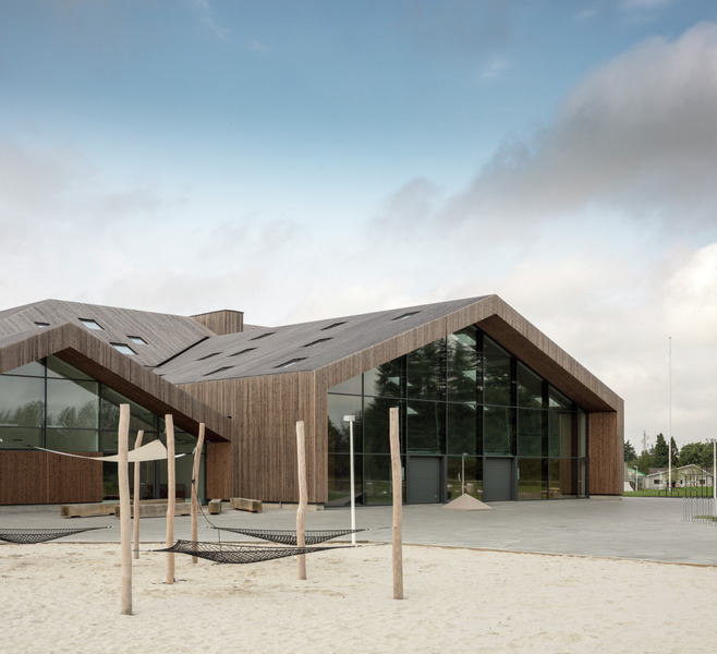 Vlastní architektura budov nejen, že připomíná místní stavitelské principy hojně využívané v regionu, ale velmi důmyslně využívá kvalitního denního osvětlení. Základním principem je orientace a dispozice. Architekti rozmístili vertikální i střešní okna způsobem, který maximálně odpovídá potřebám jednotlivých vnitřních typologií. Společné prostory, jako je aula, jsou do hloubky dispozic prosvětlené pomocí střešních oken VELUX, která najdeme i na některých dalších místnostech komplexu. Tělocvičny pro míčové sporty jsou bez střešních oken, zatímco ostatní multifunkční sály jsou osvětlené denním světlem ze všech směrů.