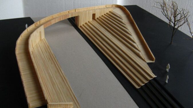 místností. Sibiřský modřín je využit i pro tribunu a pro nášlapné vrstvy mostku