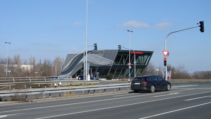 Architektonický výraz koresponduje s kontextem tohoto dynamického místa i proto, že hlavní myšlenkou konceptu budovy je pohyb zachycený do statické formy. Návrh fasády je založený na poměrně jednoduché sestavě křivek, vycházející z trajektorie pohybu. Tyto křivky pak vytváří obal geometrického objemu. Výsledná geometrie je proložena parametrickým prostorovým konstrukčním modelem, následně topograficky upravena do formy pohledových lamel, které využívají stroboskopického jevu k vytvoření iluze pohybu.