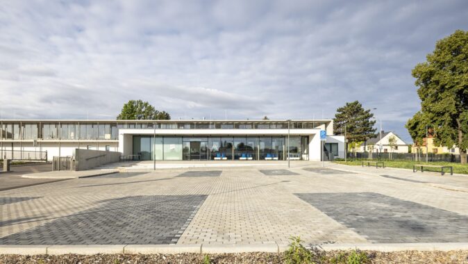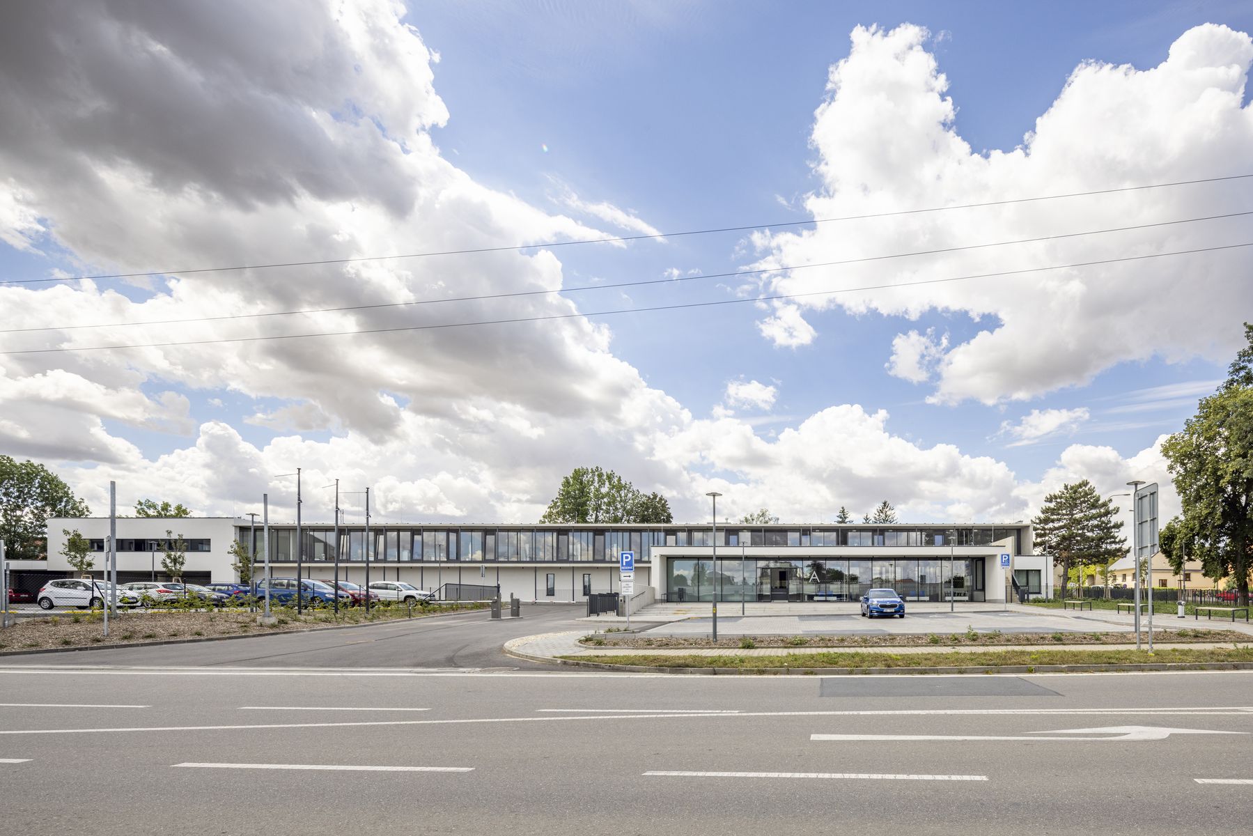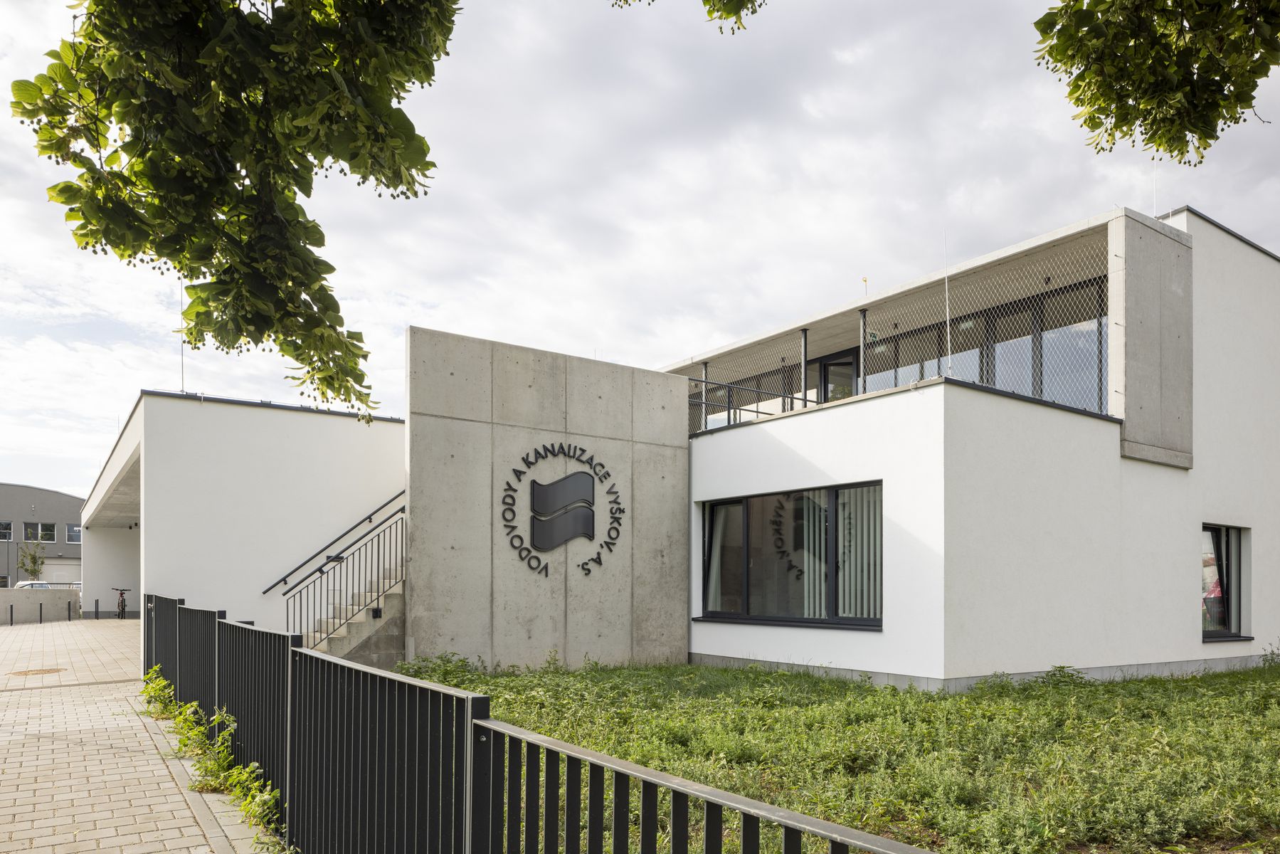 V zadní části pak navazují objekty garáží, skladů a dalších technických provozů. Rovněž prostor dvora je funkčně rozdělen na dvě části – reprezentativní, veřejně přístupnou část s parčíkem a parkovištěm pro zákazníky a uzavřenou část pro zaměstnance a provozní zázemí správců vodovodů a kanalizací. Zákaznické centrum je zdůrazněno předsazenou vstupní částí, horizontální forma domu je umocněna lodžií po celé délce kanceláří v horním podlaží. Z důvodu zachování fungování areálu po celou dobu přestavby byla realizace rozdělena do několika etap.