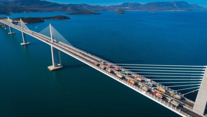 Nový lanový most se šesti pylony má délku 2404 metrů a šířku 24 metrů a dokáže odolat větrům o rychlosti až 180 km/h. Pozoruhodná stavba spojuje region Dubrovníku na jihovýchodě země s ostatními částmi Chorvatska, aby usnadnila a zrychlila cestování turistům i místním obyvatelům, kteří tak nemusejí ztrácet čas průjezdem přes Bosnu a Hercegovinu. Z celkových nákladů 526 milionů eur na výstavbu pelješského mostu uhradila více než dvě třetiny Evropská unie.
