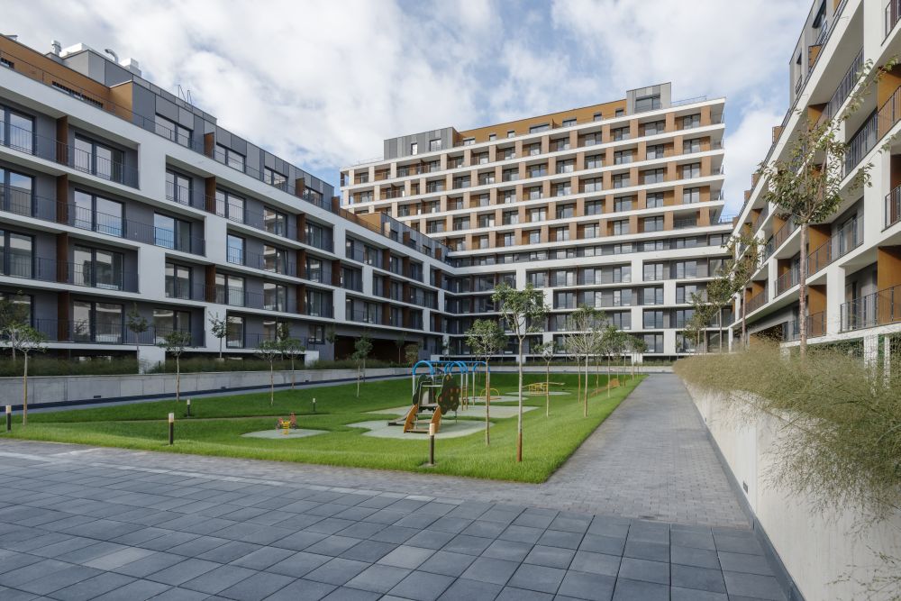 uzavretý mestský blok s vnútorným poloverejným parkom. V druhej fáze Slnečníc sa