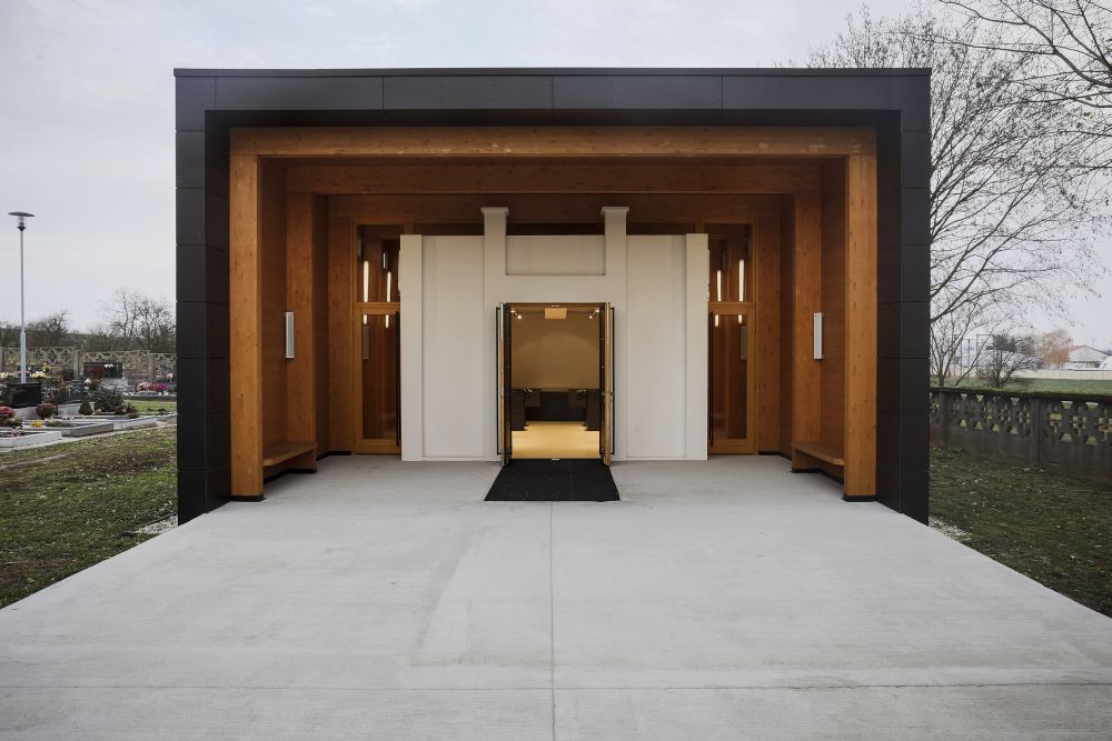 cembritovými fasádními deskami. Hlavní vstup do obřadní síně je zvýrazněn