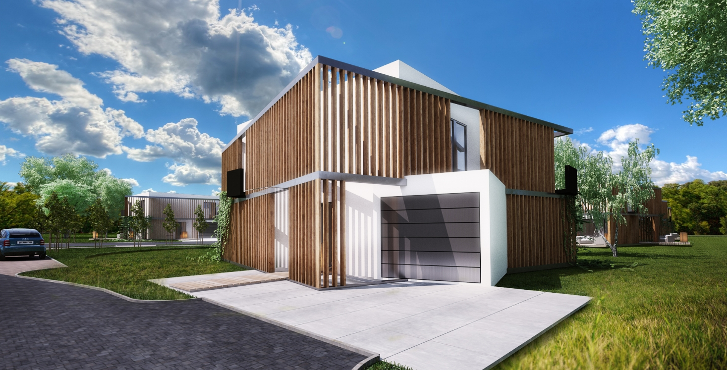 parkovací stání či garáž. Půjde o 6 rodinných domů 4+kk o obytné ploše 119 m2, sloučených do 3 dvojdomů, a 14 samostatných vil 5+kk o obytné ploše 155 m2 až 168 m2. Všechny vyrostou na rozsáhlém pozemku o ploše až 992 m2.