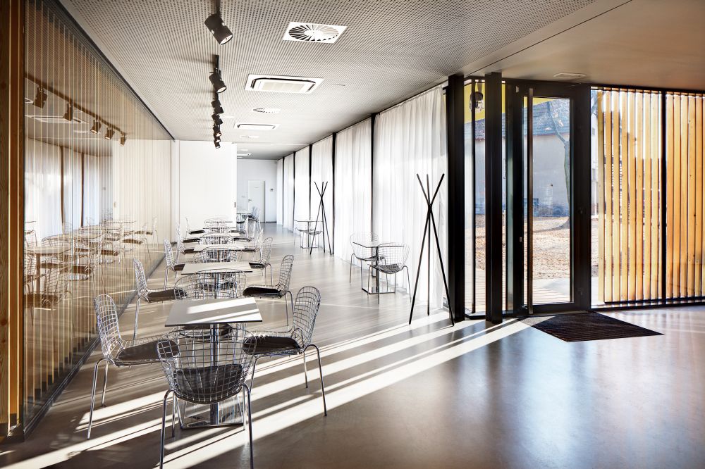 kavárny a když se otevře, umožňuje propojení vnitřních a venkovních aktivit. To