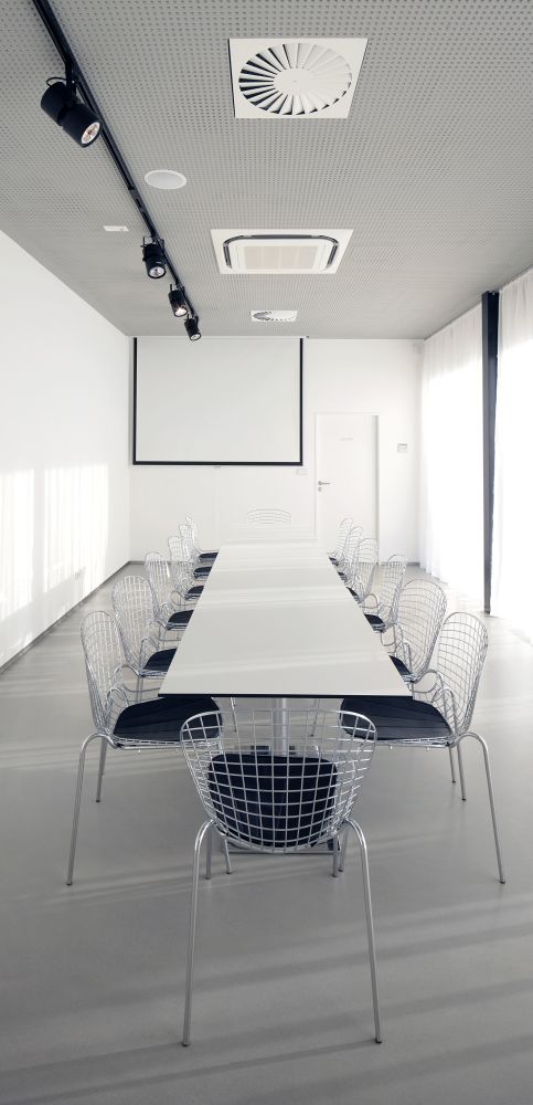 Tvar atria definuje transparentní fasáda – vtahuje venkovní zeleň do interiéru
