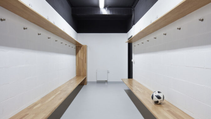 vlastní sportovní haly umístěny šatny se sprchami pro sportovce i