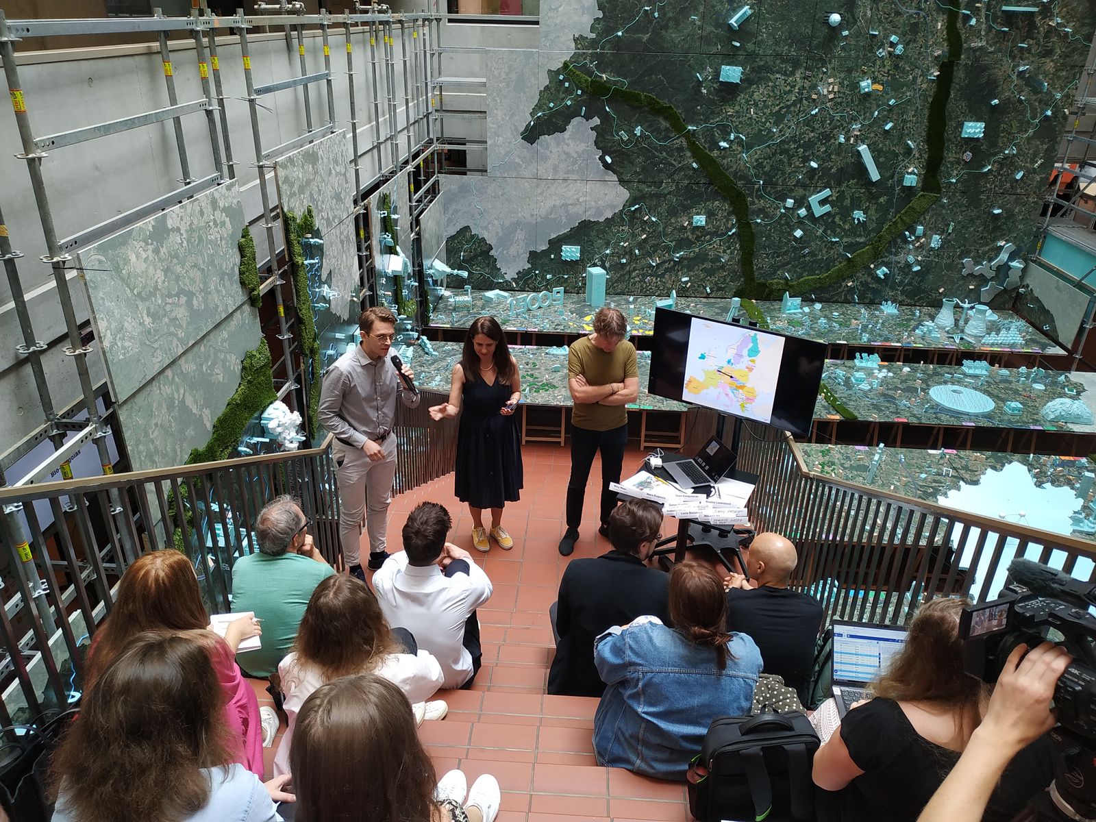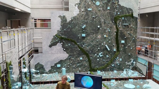 posvátnou půdu atria a doslova jej vytapetoval rozsáhlou mapou České republiky se
