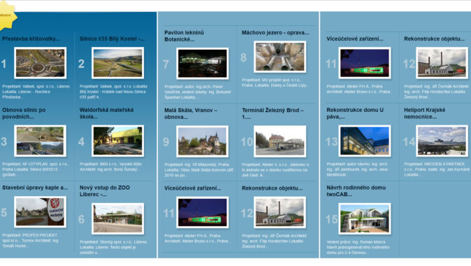 architektury a stavitelství, 68 staveb. Z Libereckého kraje se o titul