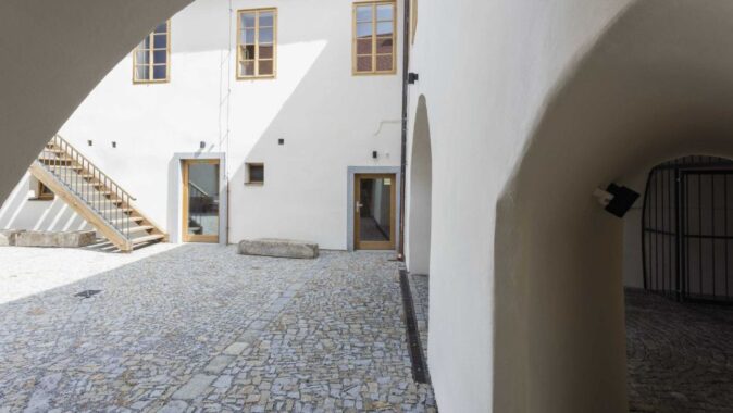 „Severovýchodní stěna severního křídla měla původně funkci vnitřní zdi, která vedla do prostoru soutky mezi dva sousední domy. Ve chvíli, kdy byl jeden objekt zbourán, vznikla slepá stěna. V téměř celém severním hospodářském traktu jsou nyní obytné pokoje, pro které jsme museli vytvořit nová okna. Přestože stěna tvoří poměrně velkou plochu, rozhodli jsme se, že budou spíše malá – rozměry oken vychází na výšku oken stávajících, jejich šířka je však výrazně menší. Tuto fasádu nikdy nevnímáte frontálně, ale vždy pod určitým úhlem, úzká okna tedy působí jako štěrbiny ve zdi. Naší snahou nebylo tuto fasádu příliš architektonizovat a přibližovat ji fasádě do náměstí,“ uzavírá Luboš Zemen.