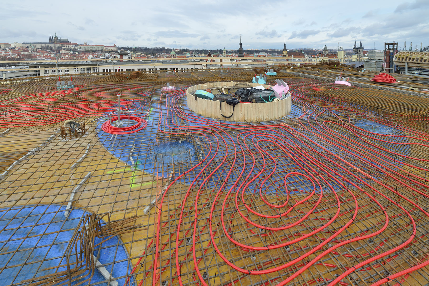 Projekty současných komerčních a administrativních budov jsou navrhovány s důrazem na co nejvyšší míru ohleduplnosti k životnímu prostředí. K tomuto hledisku se přidává požadavek na maximální komfort uvnitř objektu a minimální energetické náklady. Výjimkou nejsou budovy s plnou energetickou soběstačností. Takový cíl vyžaduje mnohostranná technická řešení, z nichž nejdůležitější je způsob vytápění a chlazení. V poslední době se stále více prosazují systémy temperování betonových konstrukcí, které pracují v nízkoteplotním režimu, jenž dovoluje efektivně využívat alternativní zdroje energií, jako jsou tepelná čerpadla, a současně tak nabídnou uživatelům nesrovnatelně zdravější prostředí bez agresivních klimatizací a víření vzduchu v místnostech.