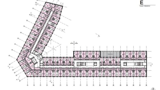 Základní stavební jednotku tvoří apartmánový pokoj s vlastní koupelnou a malým kuchyňským koutem. Vzhledem k prostorovým vazbám a umístění domu jsme volili co nejužší možné řešení pokoje, které nám dovolí maximálně využít přístup k oknům. Šířka modulové osy je 2,5 m. Vznikl tak jednoduchý systém rozponu na 5 m, resp. 7,5 m podle potřeby. Modulové členění se propisuje do fasád pravidelným rastrem oken. Každá jednotka je vybavena francouzským oknem, které dá dostatek světla, a přitom neomezuje vnitřní prostor při otevření větracího křídla. Okno k podlaze zároveň navozuje pocit otevřenosti a lepšího propojení s venkem, a tím do určité míry nahrazuje balkon. Rozdělení okna masivnějším pevným sloupkem umožňuje do budoucna upravit dispozice na širší moduly, pokud by nastala poptávka po větších pokojích. Modul by pak mohl být 3,75 m.