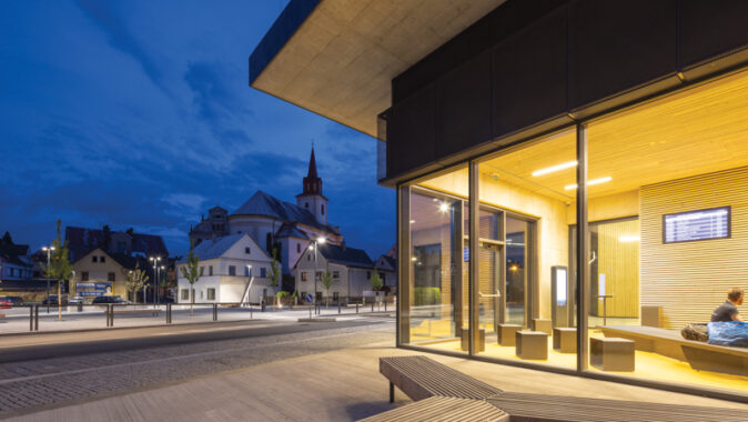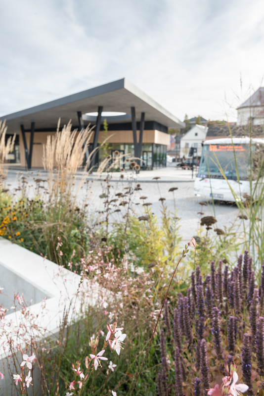 Funkčně budova tvoří centrum nového Terminálu veřejné dopravy, je umístěna na centrálním ostrůvku objízdného řešení terminálu. Zároveň odděluje samotné zastávky od ulice a zbytku města. Je tak jednoznačně vymezen prostor pro autobusy. Terminál je řešen jako objízdný s jednosměrným provozem. V centru je umístěna objekt Odbavovací budova, která zároveň vytváří zastřešení venkovního odbavovacího prostoru pro cestující. Čekárna v objektu zaručují plnou kontrolu nad přijíždějícími autobusy i nástupišti.