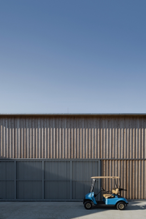 První objekt je dvoupodlažní dřevostavba se sedlovou střechou využívaná pro šatny, zázemí zaměstnanců, kancelář, sklady a opravárenskou dílnu veškeré techniky. Druhý objekt je nevytápěný jednoduchý jednopodlažní ocelový skelet s dřevěnou fasádou, určený pro parkování strojů pečujících o celý golfový resort. Třetí objekt, který areál odděluje od potoku a hřiště, je blok příslušenství s betonovými kójemi pro skladování sypkých hmot a také s přístřeškem pro parkování.