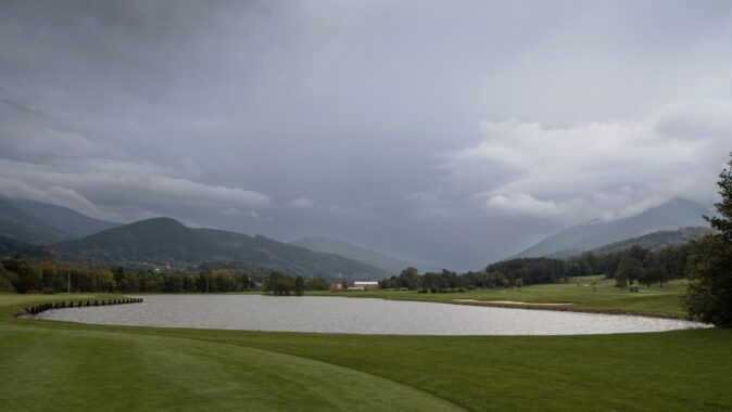 Golfový resort v Ostravici je známý svou jedinečnou expozicí s výhledy na vrcholky Beskyd, zejména Lysou horu, obtížností hry a v neposlední řadě kvalitou hřiště. Právě kvalitně udržované hřiště se však neobejde bez dobrého zázemí údržby, a to stávající v bývalém zemědělském areálu nárokům již dlouhodobě nevyhovovalo. Investor pro výstavbu nového zázemí údržby vybral zbylý pozemek ve tvaru trojúhelníku, který od hřiště dělí potok Stříbrník, a který je současně v těsné blízkosti plánované výstavby bydlení a ubytování. Z původního očekávaní hospodářského zázemí ve standardu plechové skladovací haly se tak úvahy o estetice stavby, jejím členění, a v neposlední řadě o vztahu k širšímu okolí začaly ubírat jiným směrem. Naším záměrem bylo přispět ke kultivaci výstavby v této krajině a to konkrétně použitím měřítka a estetiky, která z ní vychází. Snaha o navázání na místní řemeslné tradice a vytvoření souboru objektů, které svým výrazem nebudou budoucí rezidenční výstavbě trnem v oku a sousedskou ostudou, dala vzniknout areálu, jenž svým uspořádáním a členěním na tři objekty definuje hospodářský dvůr. Ten se tak stává těžištěm celku, a zároveň skrývá běžný provoz před zraky okolí. Ve schématu hospodářského dvora je tak možné hledat hlavní inspiraci pro celé řešení. Členění areálu má mimo tuto historickou inspiraci své opodstatnění dále jak v logice provozu údržby, tak i ve snaze o efektivní využití parcely komplikovaného tvaru.