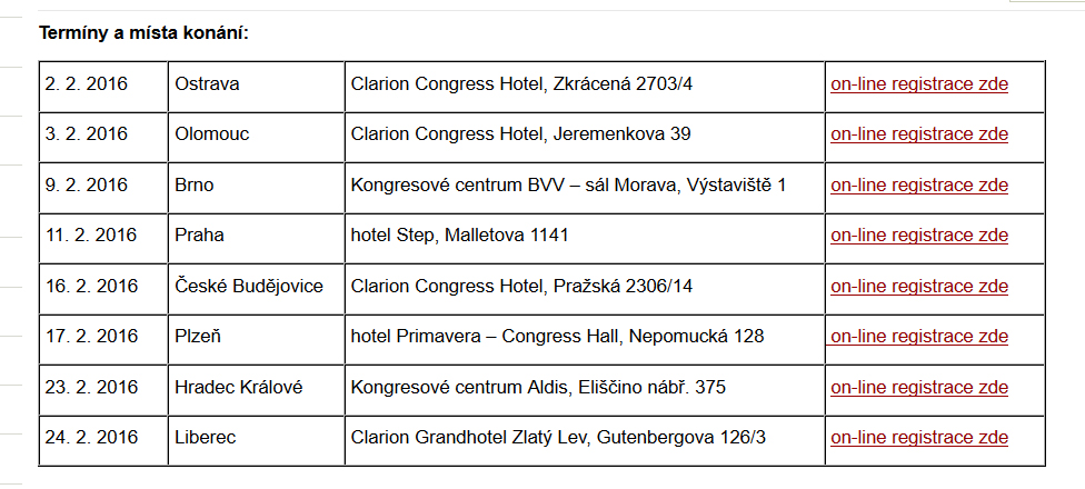 Semináře se konají po celé ČR,