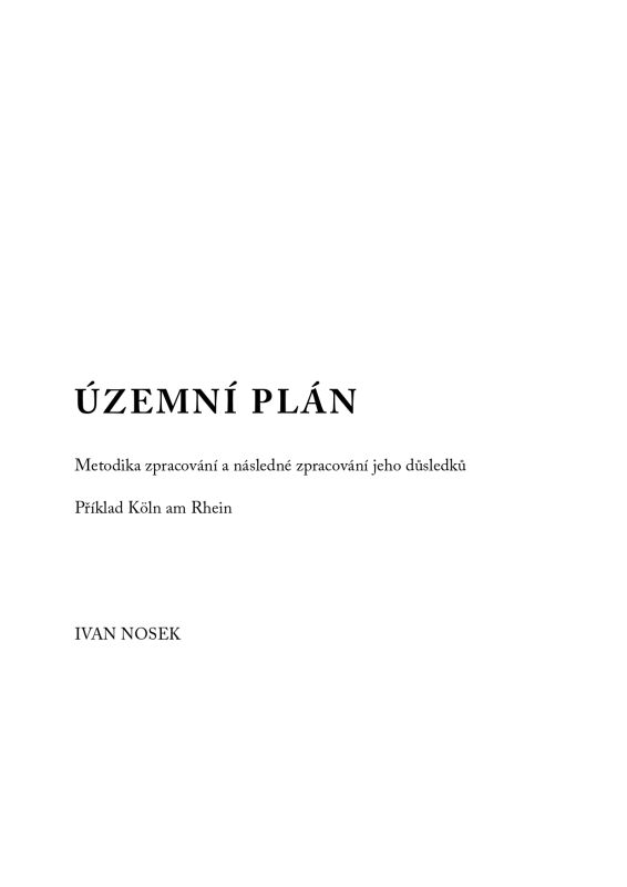 Dokumentace územního plánu si bere za příklad Kolín nad Rýnem. V projektu je zpracována územně plánovací dokumentace, která se snaží o racionalizaci prostorového a funkčního uspořádání území. Kniha si bere za cíl dokumentovat historický rozvoj města a části jeho infrastruktury.