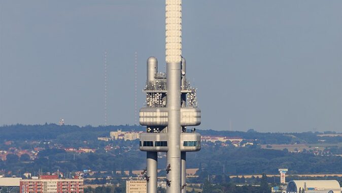 Žižkovský vysílač vznikal v letech 1985 až 1992 podle návrhu architekta Aulického a statika Jiřího Kozáka a Alexe Béma. Podle některých zahraničních serverů patří 216 metrů vysoká věž mezi nejošklivější stavby světa. Vysílač stojí v Mahlerových sadech na rozhraní Žižkova a Vinohrad na místě starého židovského hřbitova. Konstrukce se skládá ze tří ocelových tubusů, které nesou celkem devět kabin. V nejvyšším patře je umístěna vysílací technika. Celá stavba má hmotnost 12.000 tun.