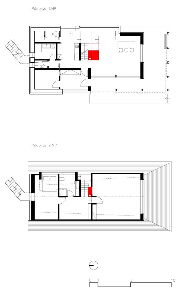 domu. Hřeben střechy zezadu dopředu stoupá, reaguje tak na vnitřní dispozici.