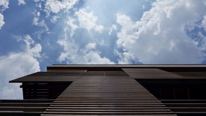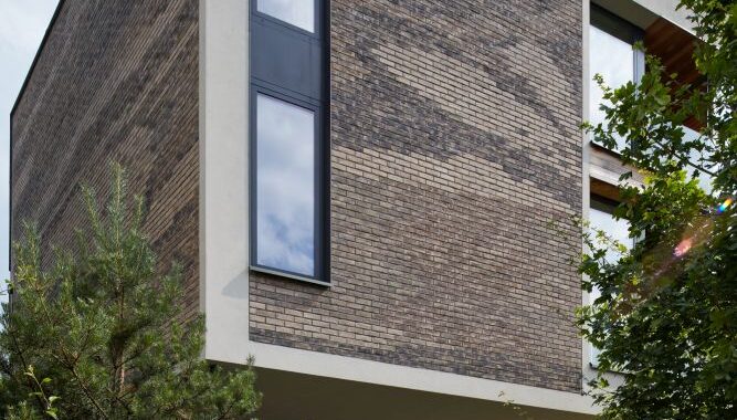 cihelným obkladem vně, kontra vrstvení dřevěných materiálů posuvných žaluzií a