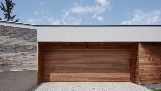 do garáže, se pohledově uplatňuje pouze horní podlaží a dům tak působí jako