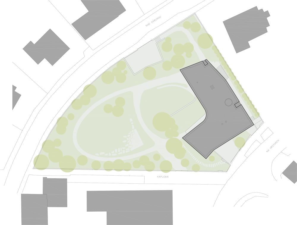 orientované do zahrady. V suterénu je umístěno technické zázemí objektu. Ze