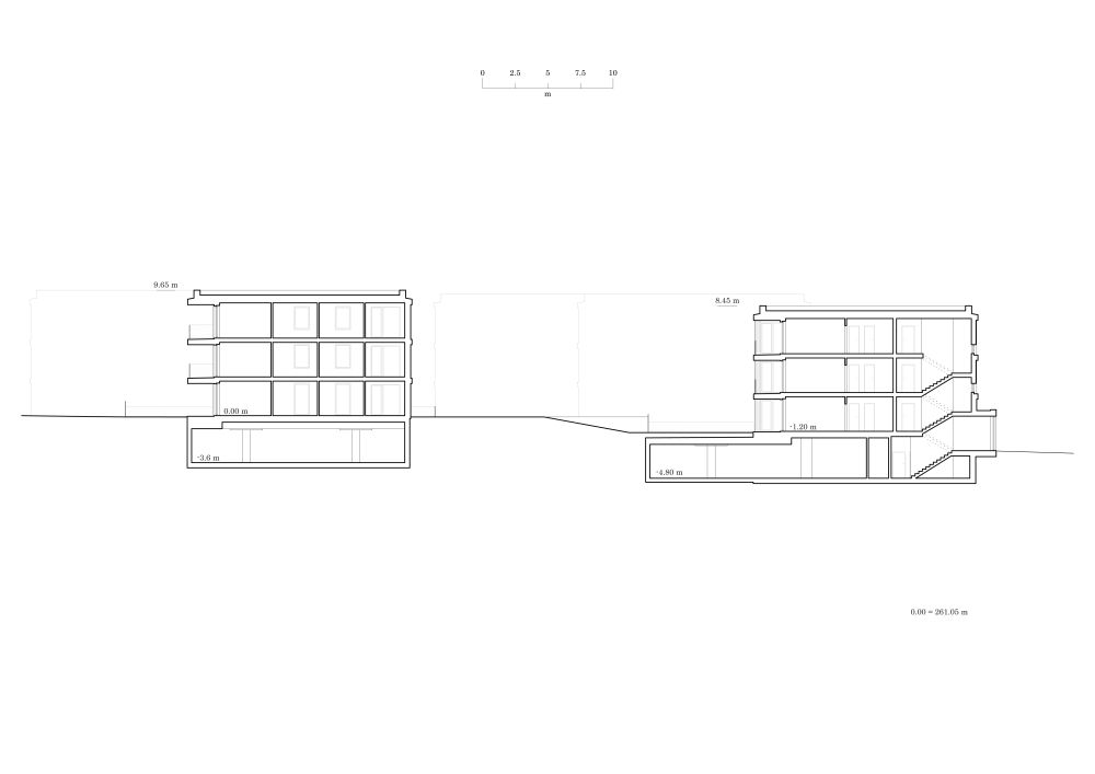 podlaží domů obsahují byty v maximálním počtu tři na podlaží. Společný vchod a