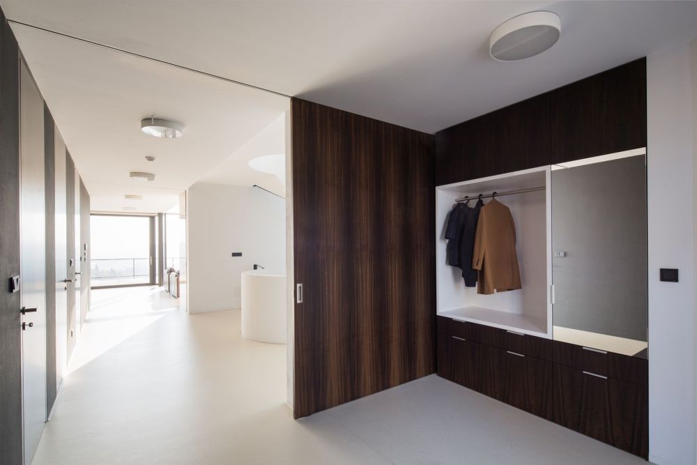z koupelny. Při příchodu z ulice je jasně čitelná koncepce dvou hmot –