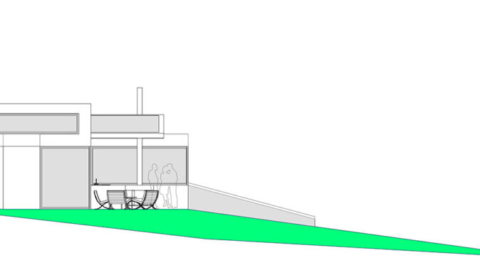 přízemní vila je zakomponována do profilu zahrady tak, že nijak nenarušuje panoráma