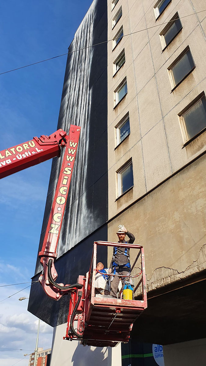 Patrik Hábl v sobotu dokončil obří malbu obrazu o rozměrech 40 metrů na výšku a 8