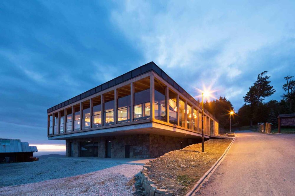 Pustevnách. Moderní přestavba výstupní stanice se nachází v blízkosti památky