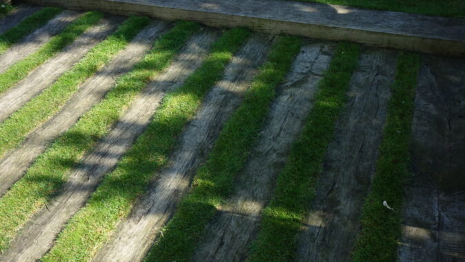vložení dubové zebry vedoucí k nové venkovní kuchyni. Zebra je také