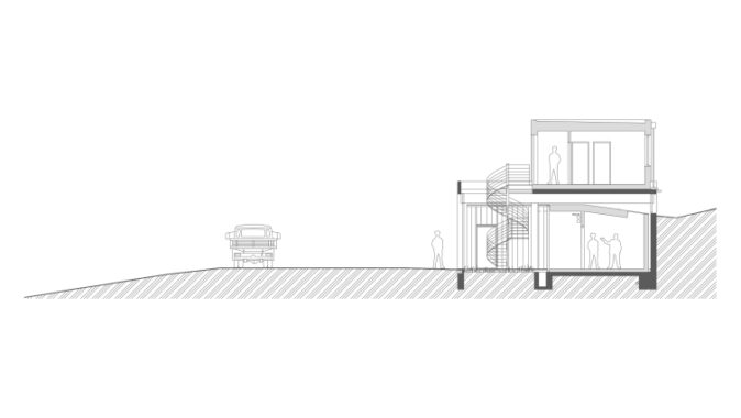 Přirozenému usazení do okolí pomáháme zapuštěním nízké hmoty do svahu. Vztah s okolní obytnou zástavbou navazujeme rytmizací fasád a použitím dřeva na hlavním průčelí. Jeho klidná plocha ožívá při provozu, kdy tep otvírání a zavírání jednotlivých modulů dává stavbě jedinečnou dynamiku.