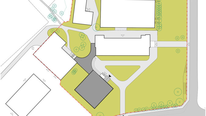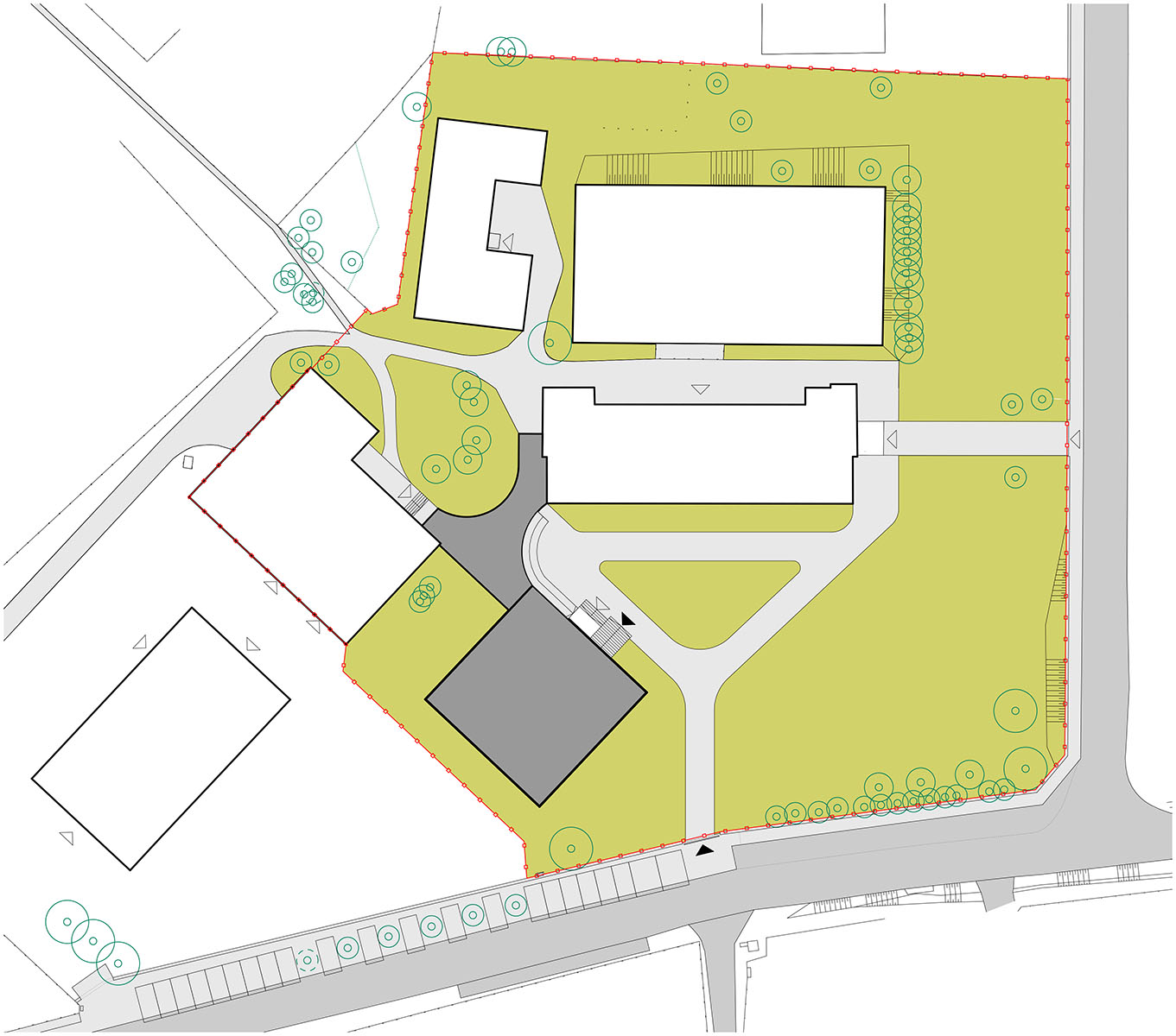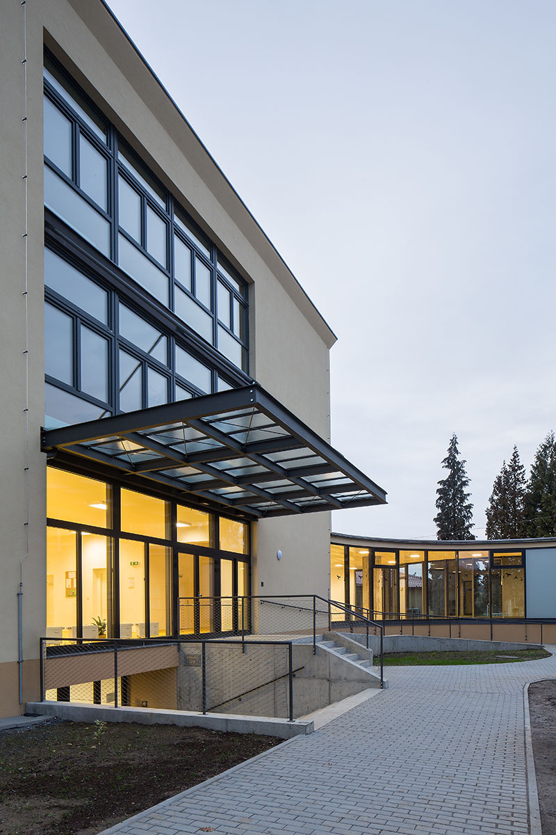 Přístavba propojí stávající školu a jídelnu spojovací chodbou. Dům má
