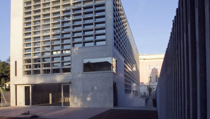 Naším záměrem bylo vytvořit neokázalou a civilní stavbu s určitou noblesou. Chtěli jsme, aby byla dobře zapamatovatelná a zároveň charakterizovala naši republiku. Podřídili jsme tomu tektonické uspořádání fasád i koncepci materiálového řešení a povrchů budovy. Dominujícím materiálem je pohledový beton ve své ušlechtilé podobě a precizním provedení, doplňuje ho dřevo a sklo. Dům se tak zařadil k dalším berlínským novostavbám podobného charakteru.