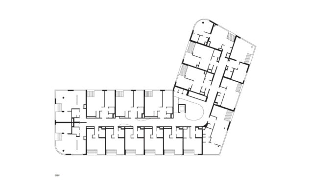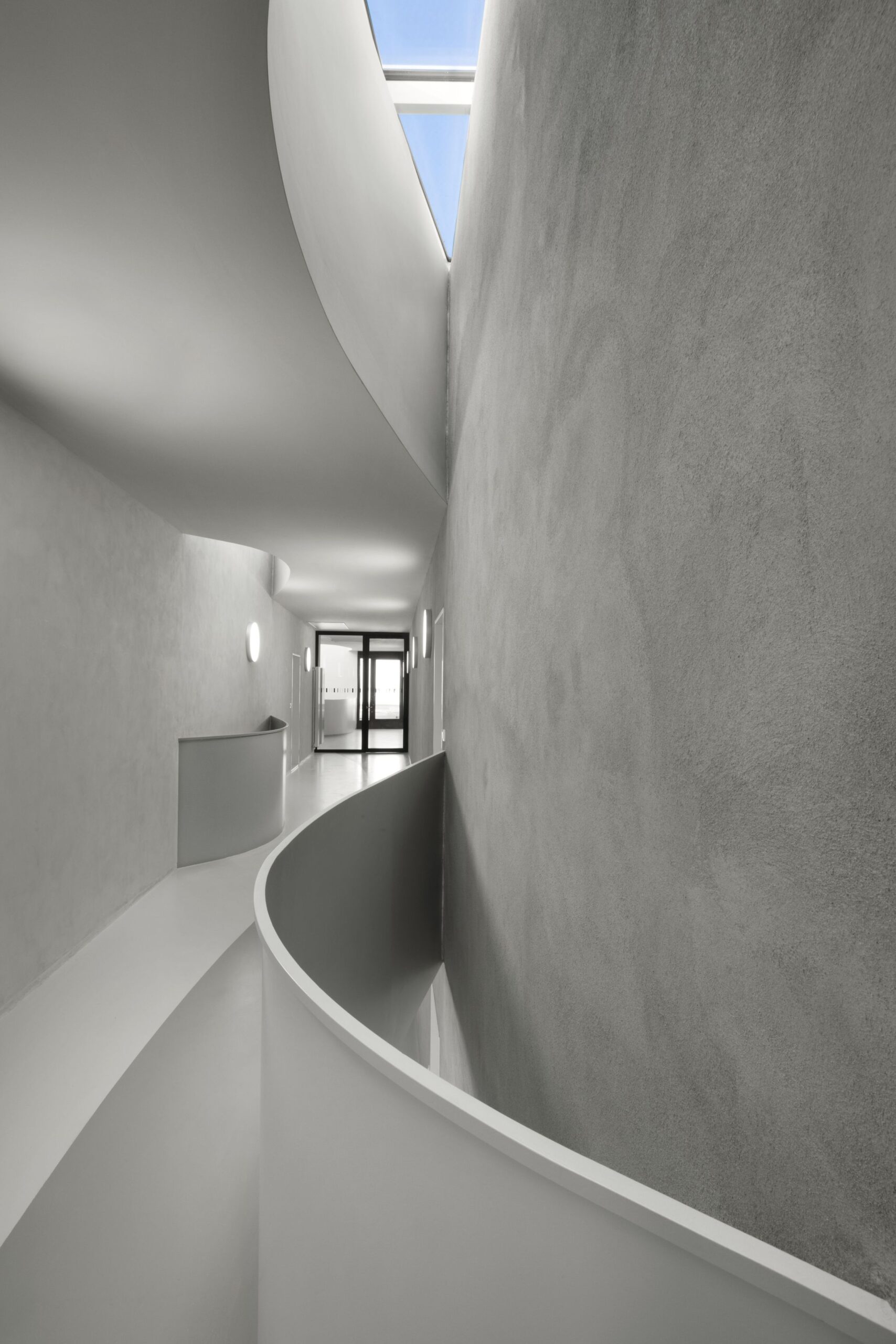 Specifika tvaru pozemku a hmotového řešení dodala navíc domu důležitý prvek – prostor centrálního schodiště. Namísto standardních schodišťových sekcí tvoří v těžišti autentický středobod stavby jako místo setkávání či jen každodenního zážitku z prostoru. Průhledy, tvarování a hry světla tak mohou být pro obyvatele odkazem k poetice schodišť starých činžovních domů či připomínkou zaniklých zákoutí staré Libně.