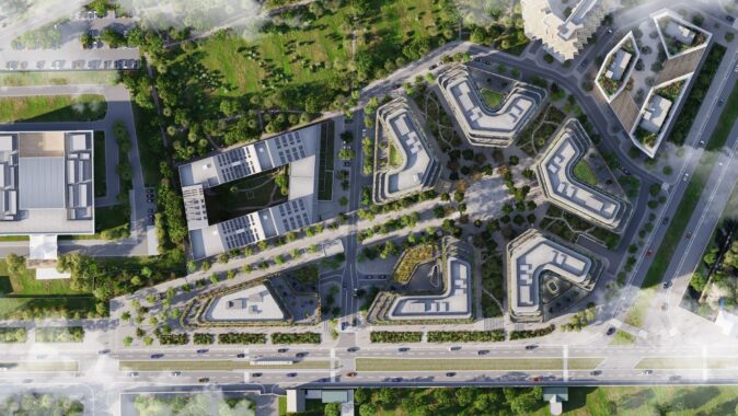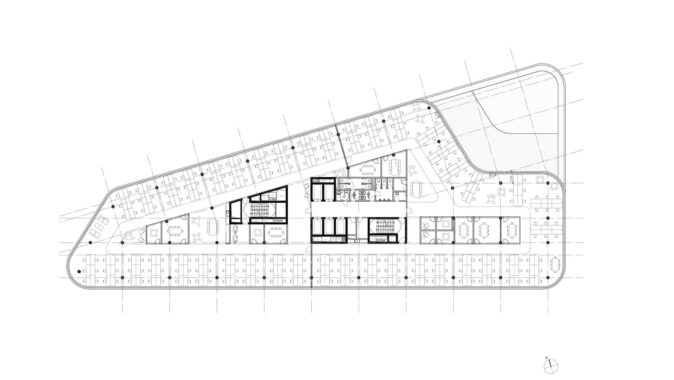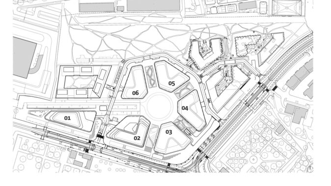 Na objekt 03 prostorově navážou další, již nižší administrativní budovy, které budou po obvodu sevřeny navrženou páteřní komunikací. Administrativní budovy jsou svými hlavními vstupy orientovány do velkorysého prostoru náměstí (plazza), které tvoří ústřední koncepční prvek návrhu. Toto centrální náměstí je doplněno o moderní vodní prvky a zároveň nabízí atraktivní rozšíření prostoru veřejné kavárny směrem do exteriéru během letních dnů.