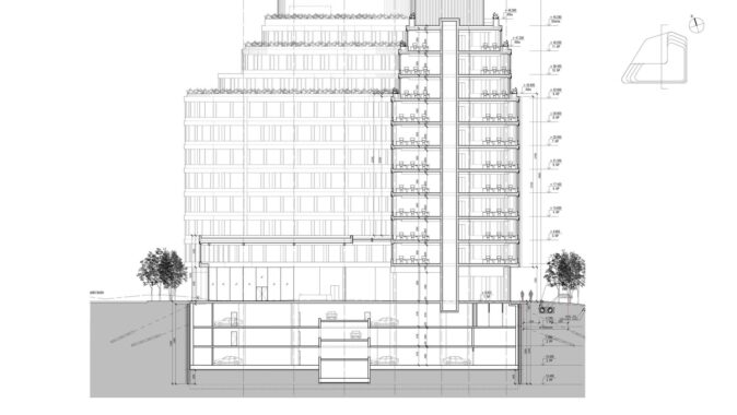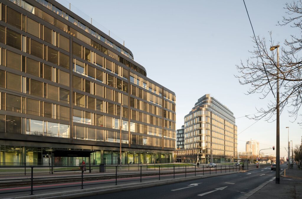 Hlavní centrální část lokality je tvořena souborem 6 administrativních budov, jejichž kompozice se spirálovitě odvíjí kolem centrálního náměstí, které je umístěno v samém srdci řešené lokality. Jedná se o samostatné výškové budovy přibližně trojúhelníkovitého půdorysu s proměnlivou výškou, která postupně od severu graduje směrem ke křížení ulic Vinohradská a Počernická. V této části dosahuje navrhovaná zástavba výšky 11 nadzemních podlaží (objekt 03) a vytváří tak dominantu, která stavebně vyvažuje rušné křížení ulic a prostorově navazuje na stávající výškové dominanty v širším kontextu území.
