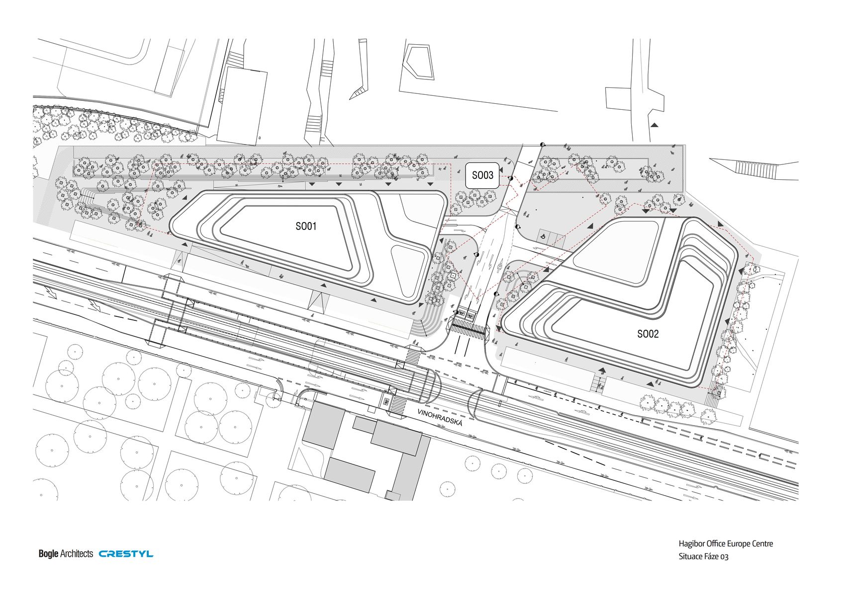 Z dopravního hlediska se řešené území nachází v přímé návaznosti na Vinohradskou ulici, která je jednou z hlavních dopravních tepen Prahy. Tato živá městská třída tvoří přirozenou páteř území, která prochází napříč celými Vinohrady a spojuje centrum města a městskou část Strašnice. Urbanistický návrh se zabývá řešením širších souvislostí místa z pohledu důležitých urbanistických vazeb, prostorové kompozice a vzájemných vztahů jednotlivých objektů. V rámci řešení byla navrženy hmoty nové zástavby a základní rysy nových veřejných prostor. Celkově bude masterplan Hagibor realizován v 5 (popř. 6) fázích, tato prezentace navazuje na již odsouhlasené fáze 1, 2 (rezidenční) a 3 (administrativní).