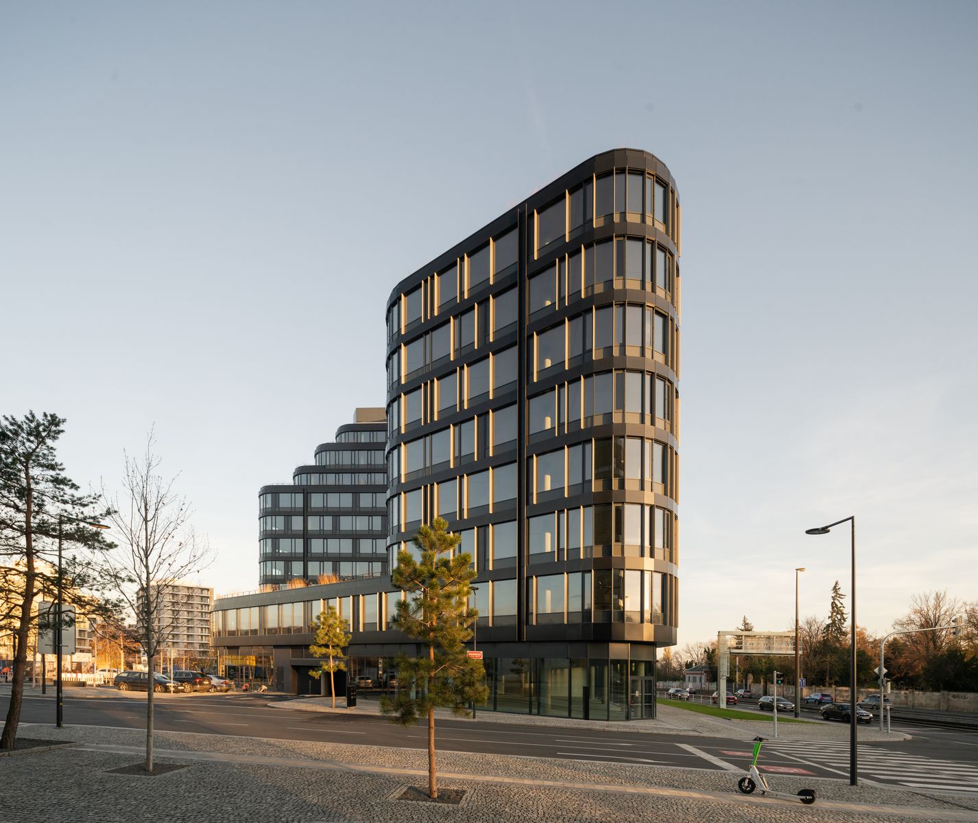 Hlavní centrální část lokality je tvořena souborem 6 administrativních budov, jejichž kompozice se spirálovitě odvíjí kolem centrálního náměstí, které je umístěno v samém srdci řešené lokality. Jedná se o samostatné výškové budovy přibližně trojúhelníkovitého půdorysu s proměnlivou výškou, která postupně od severu graduje směrem ke křížení ulic Vinohradská a Počernická. V této části dosahuje navrhovaná zástavba výšky 11 nadzemních podlaží (objekt 03) a vytváří tak dominantu, která stavebně vyvažuje rušné křížení ulic a prostorově navazuje na stávající výškové dominanty v širším kontextu území.