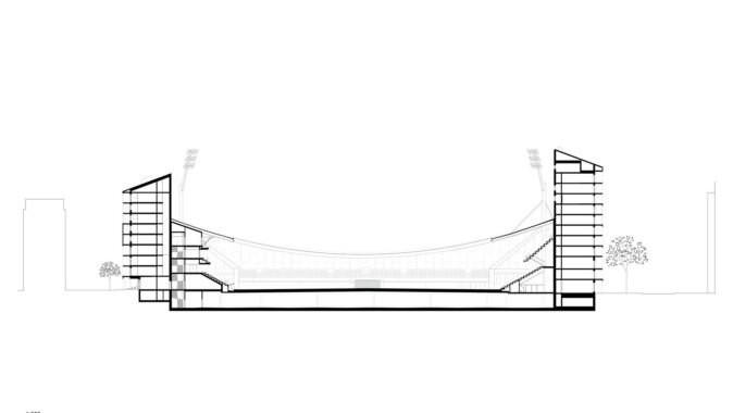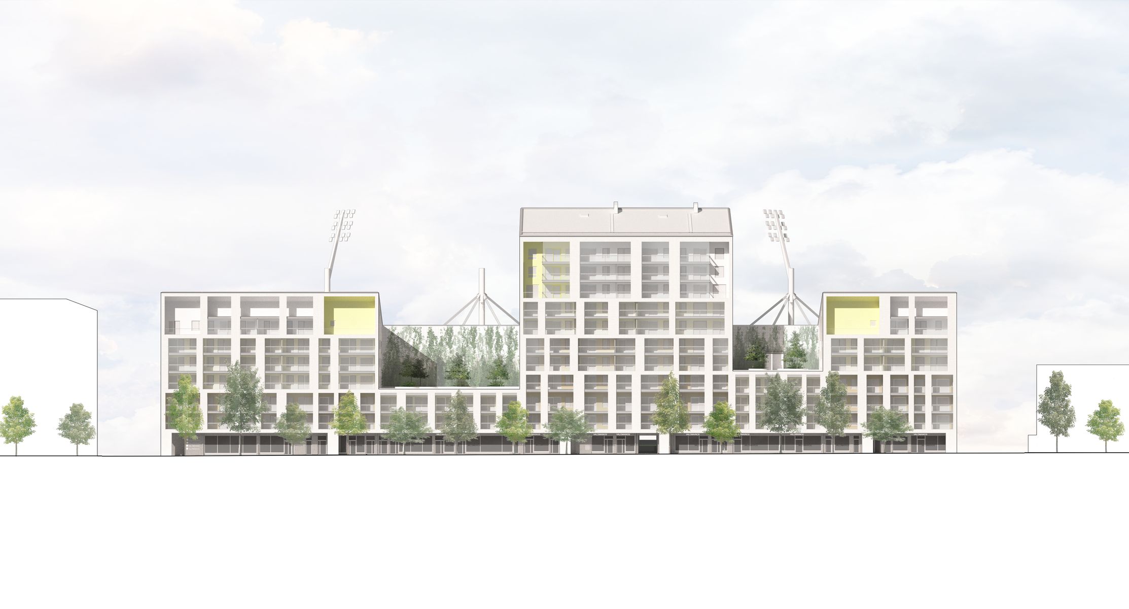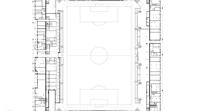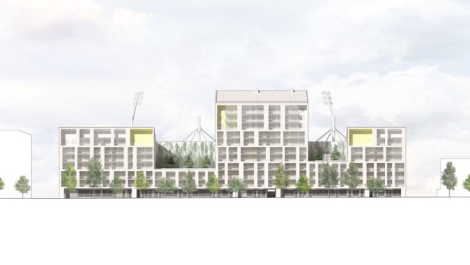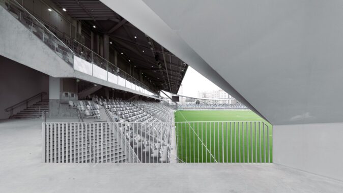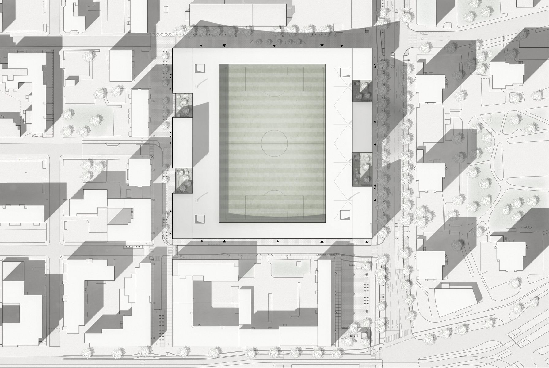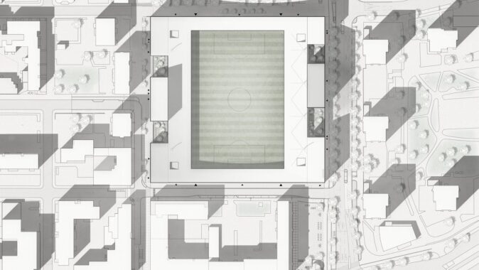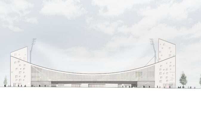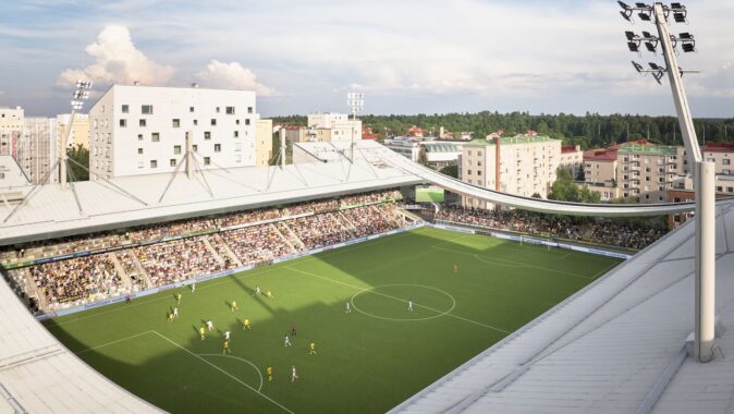 Stadion Tammela v Tampere ve Finsku transformuje historické fotbalové hřiště na hybridní městský blok kombinující sportovní infrastrukturu, bydlení, obchodní funkce a veřejný prostor. Projekt ateliéru JKMM Architects byl zařazen mezi 40 nominací na evropskou cenu za architekturu.
