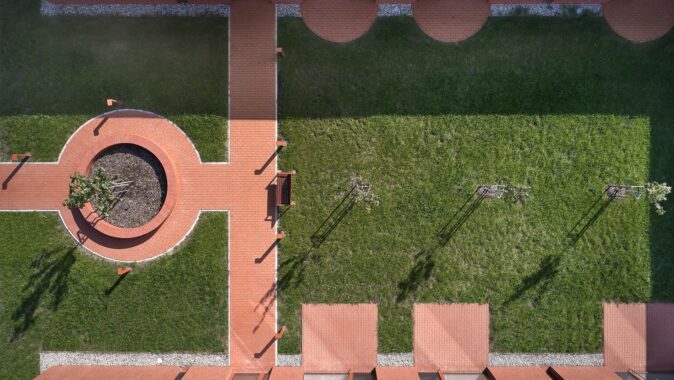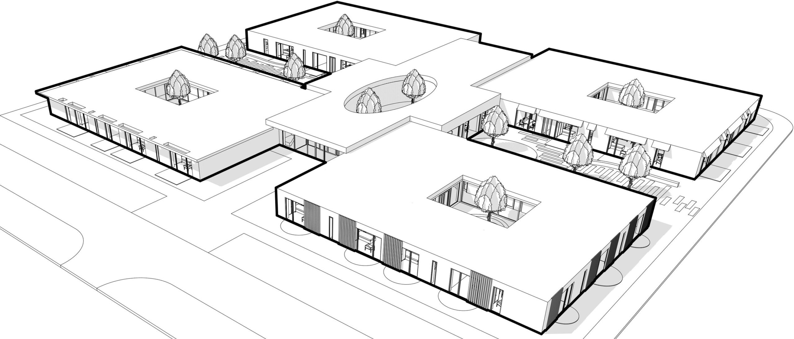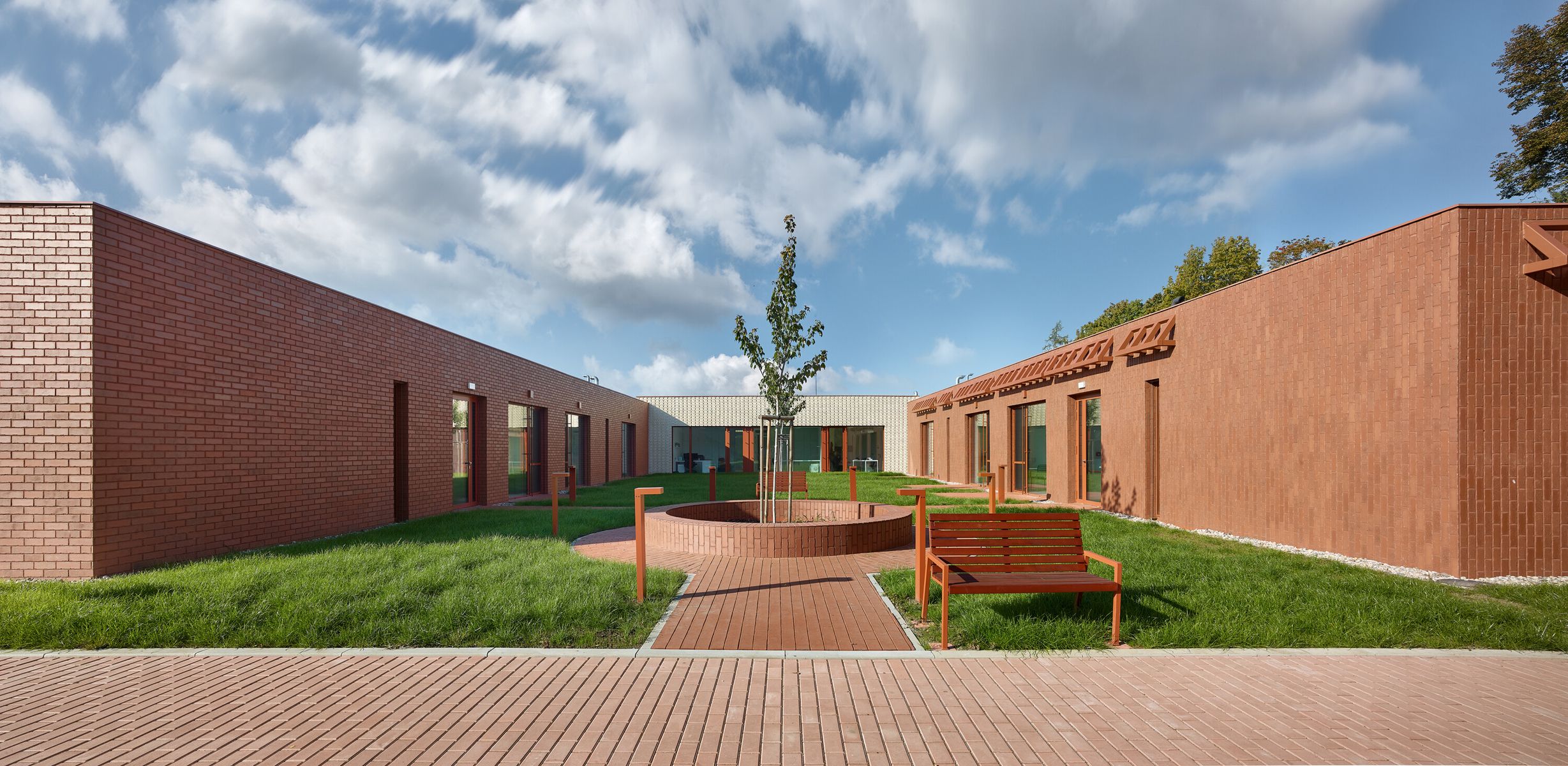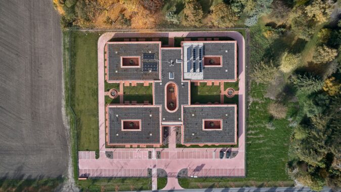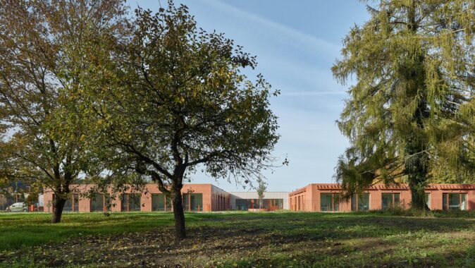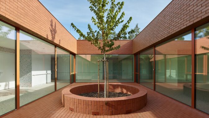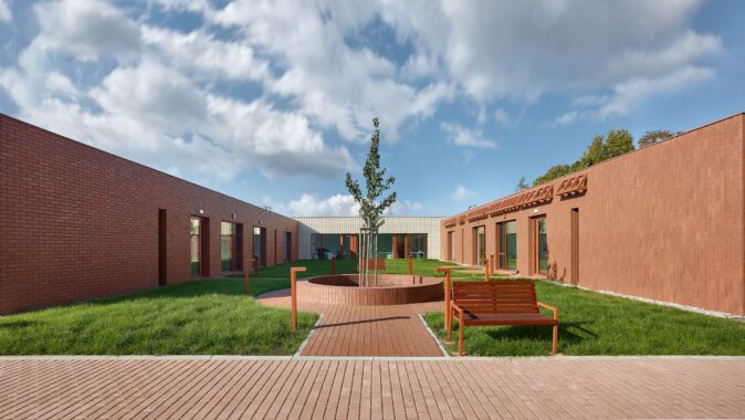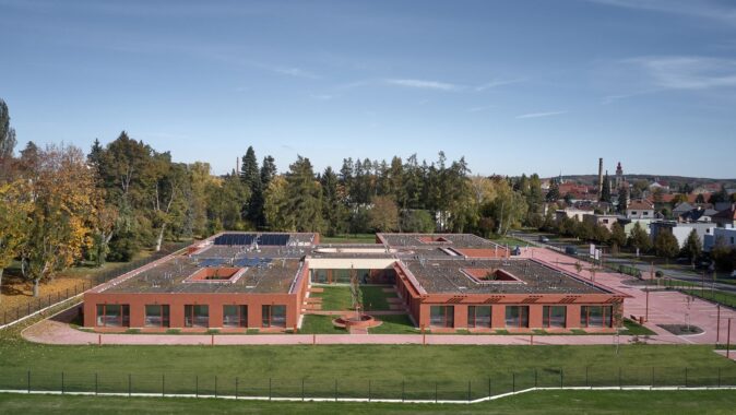 Domov seniorů v Novém Bydžově od studia Architektura / David Kraus je navržen jako soustava menších domácností propojených zahradami a atrii, které umožňují každodenní život v přirozeném kontaktu se světlem, zelení a pomalým rytmem pohybu přízemním domem.