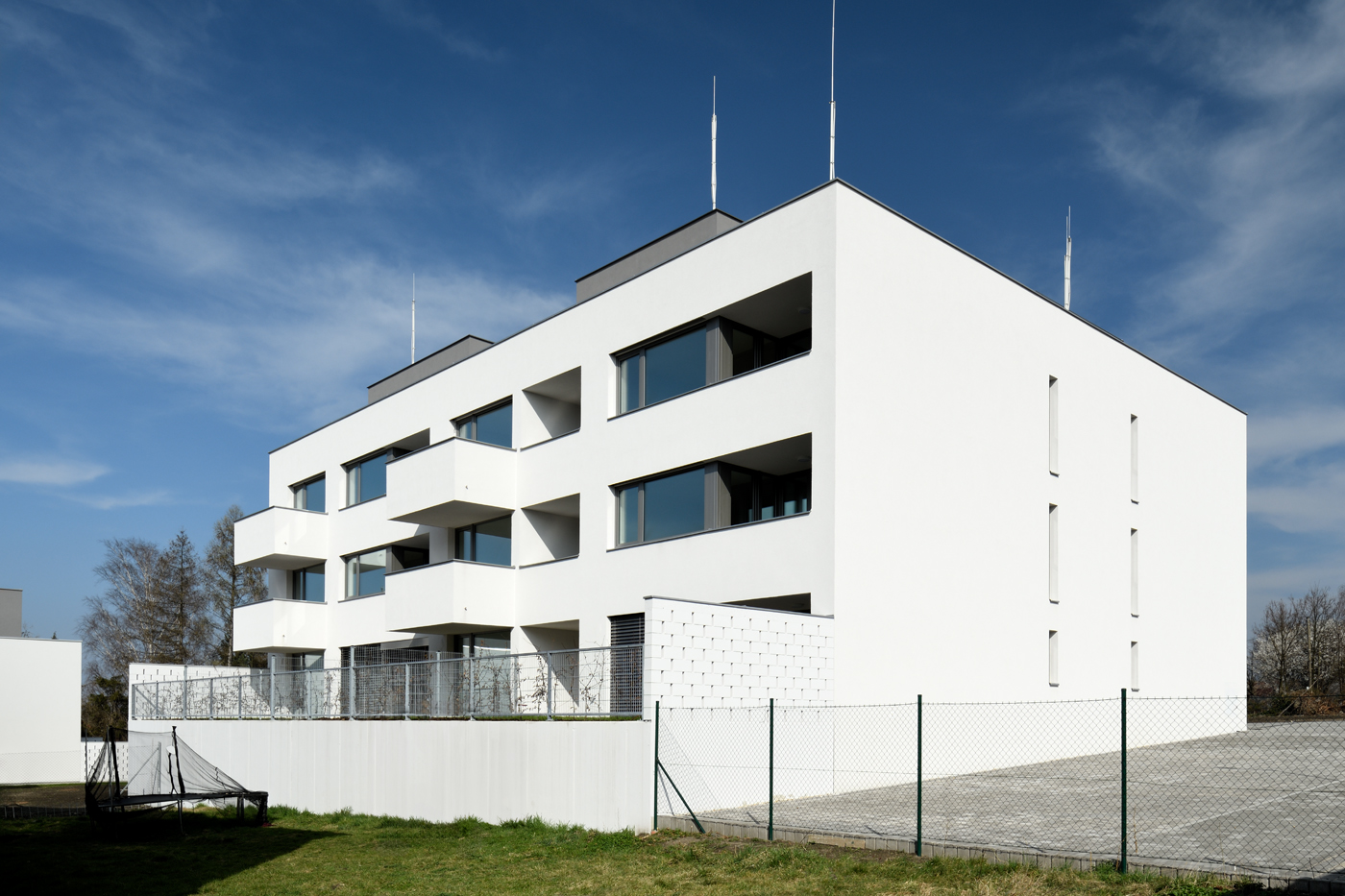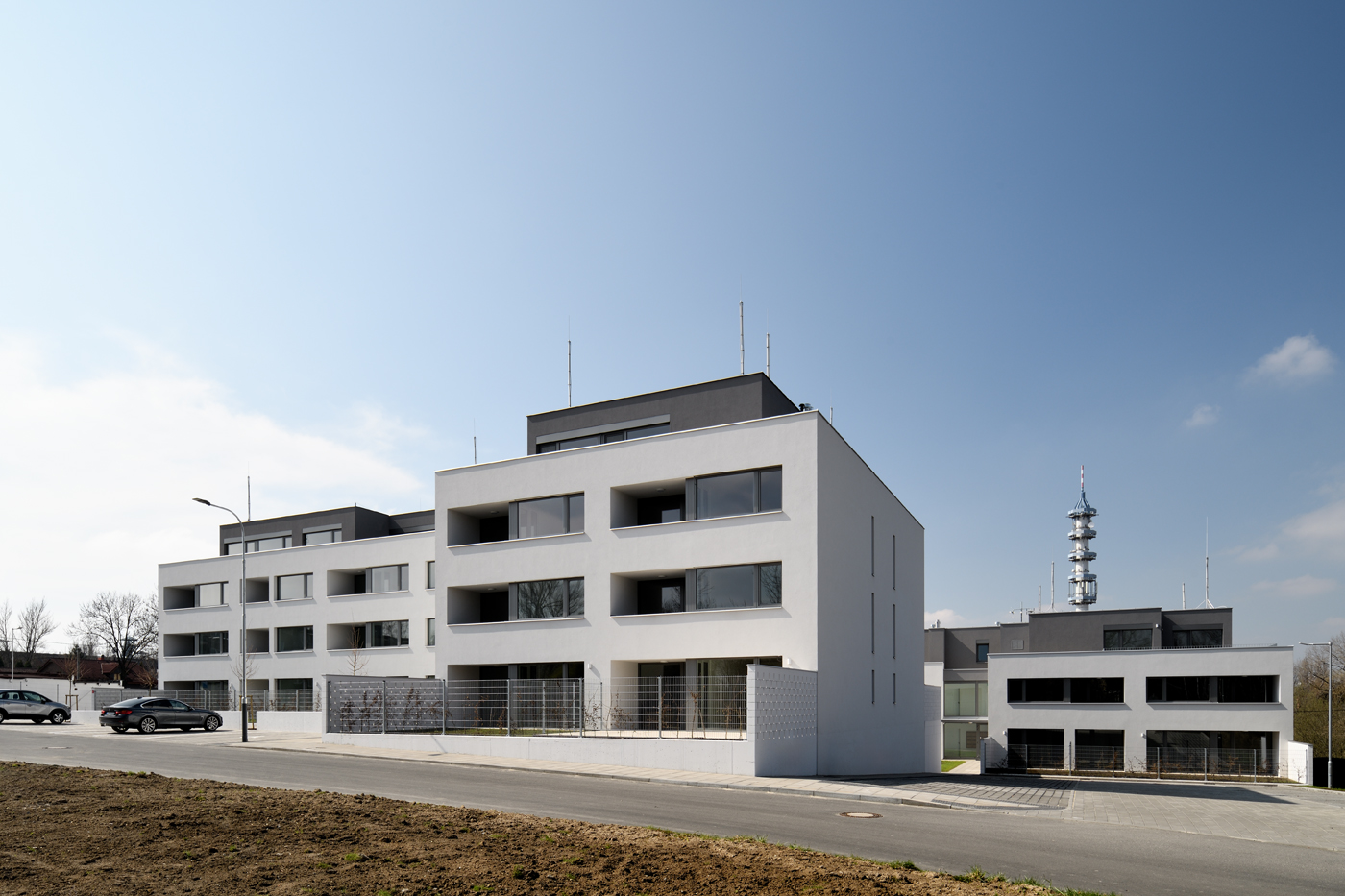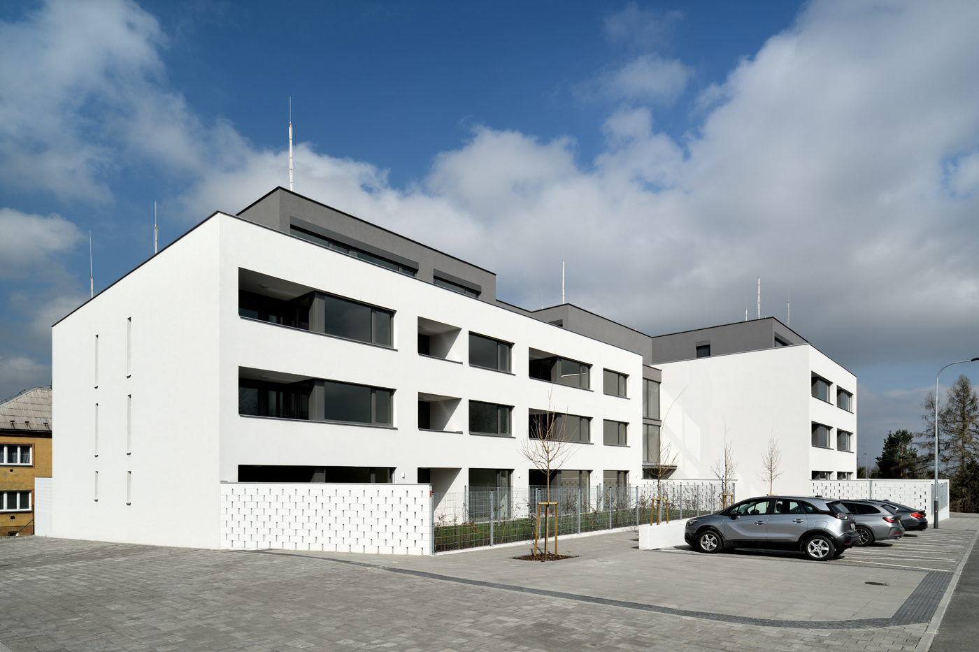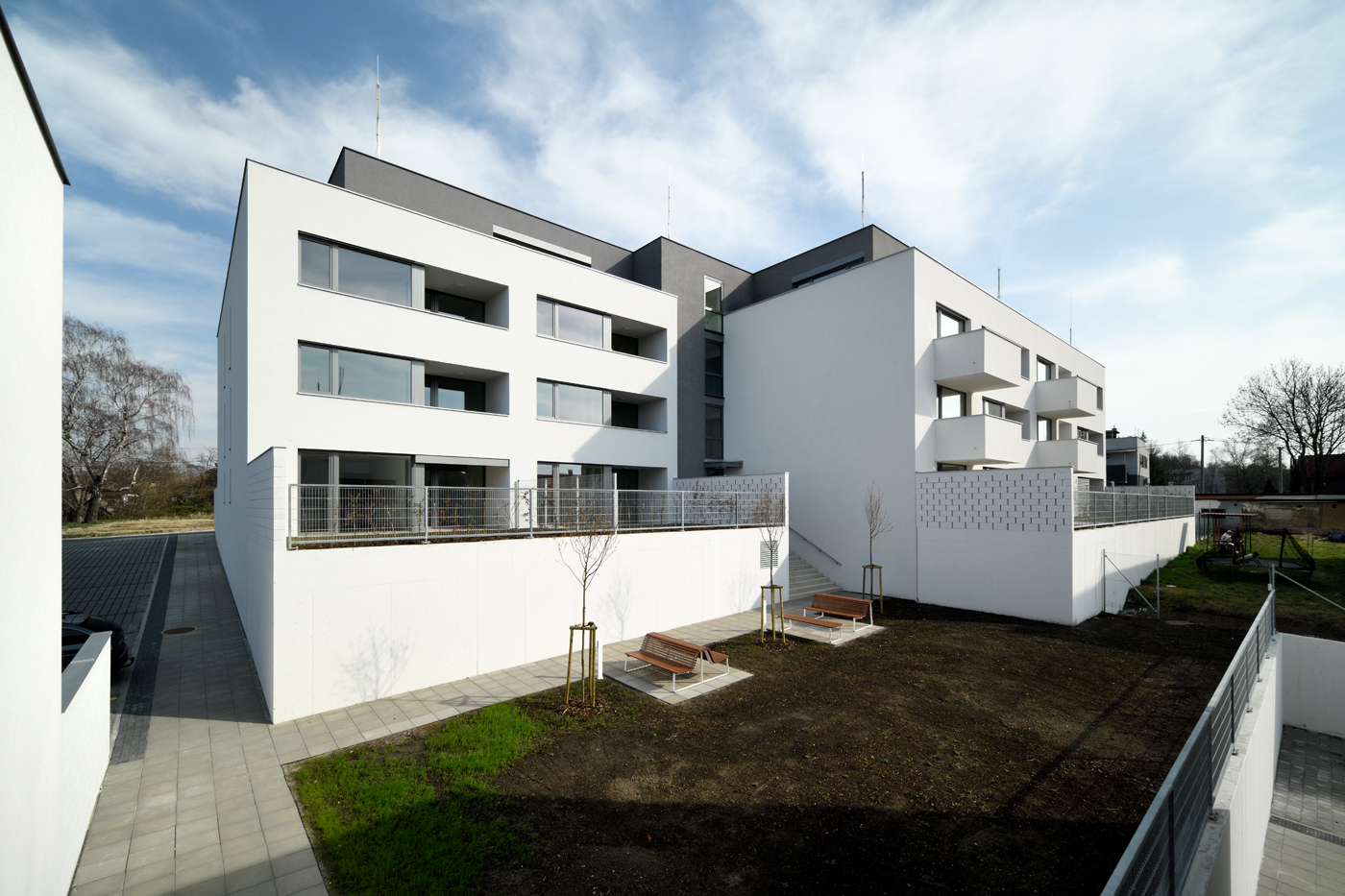 Obytný soubor je navržený jako přechodový prvek mezi nízkopodlažní zástavbou rodinných domů na severní straně a bytovými domy na straně jižní. Soubor s 53 byty je rozdělený do tří hmot, společně s předzahrádkami spodních bytů a s ustupujícím horním podlažím vytváří kompozici rozloženou po výrazné terénní depresi.