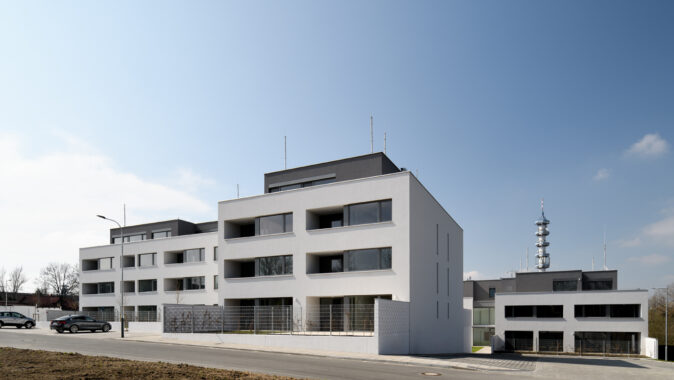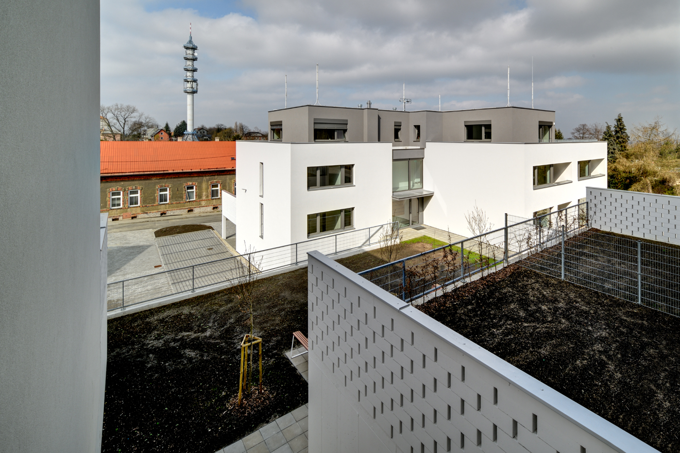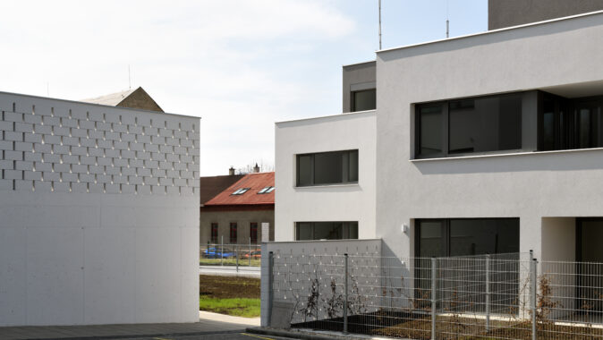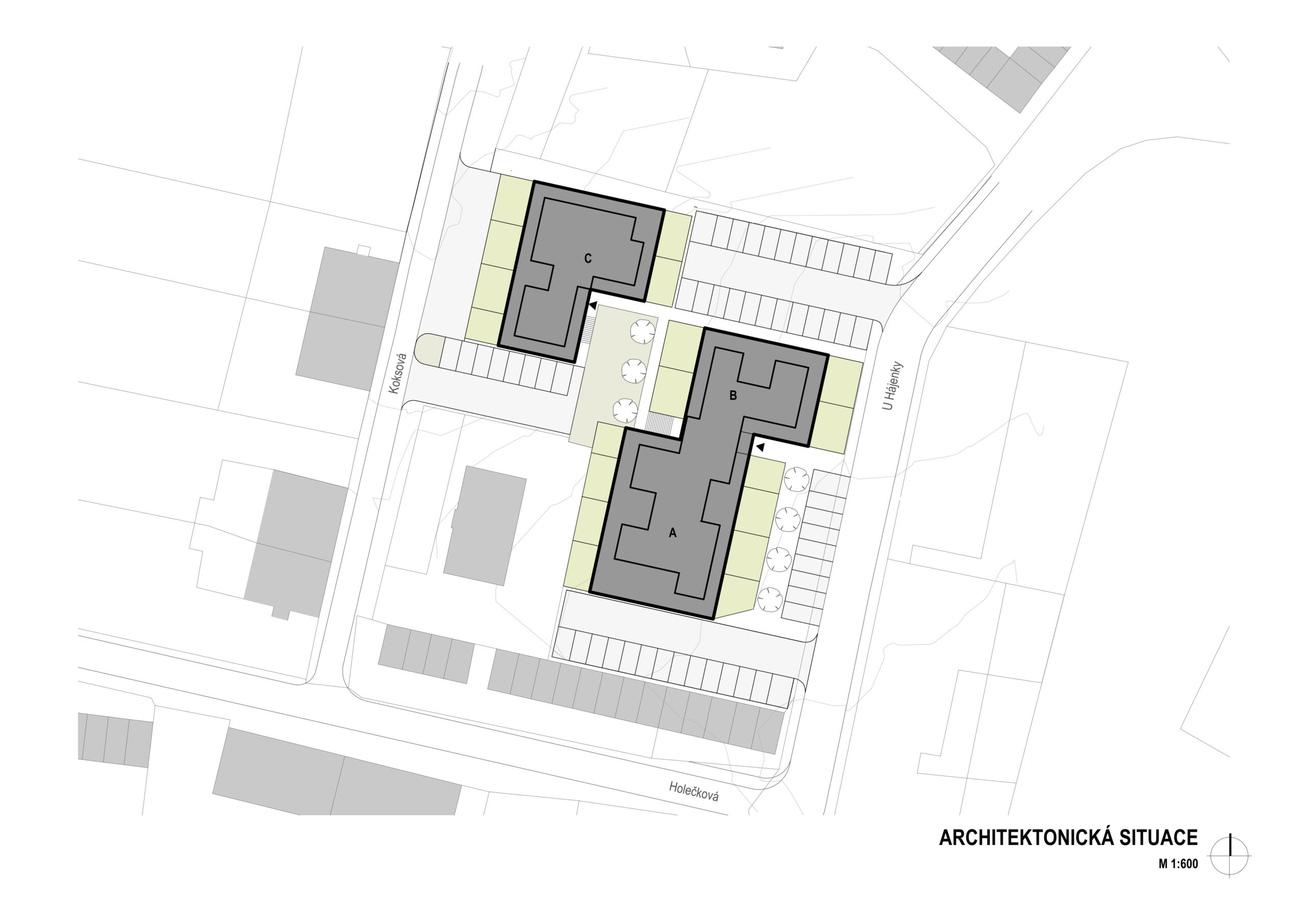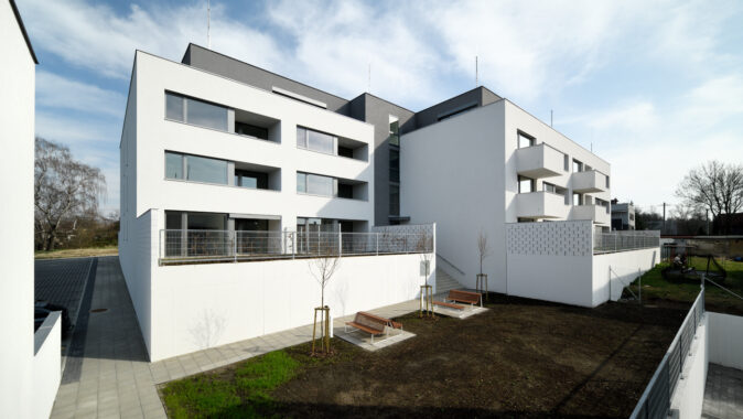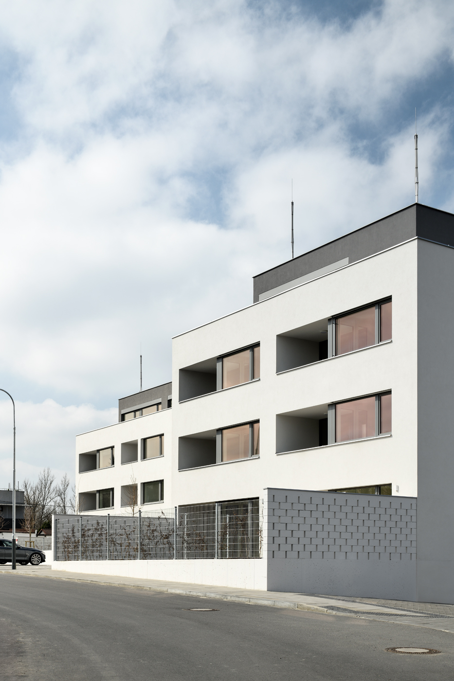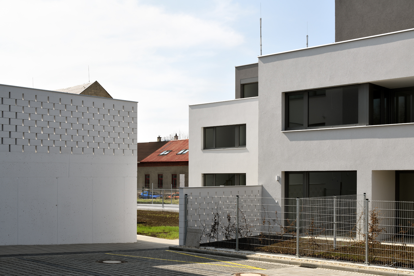 Obytný soubor je navržený jako přechodový prvek mezi nízkopodlažní zástavbou rodinných domů na severní straně a bytovými domy na straně jižní. Soubor s 53 byty je rozdělený do tří hmot, společně s předzahrádkami spodních bytů a s ustupujícím horním podlažím vytváří kompozici rozloženou po výrazné terénní depresi.