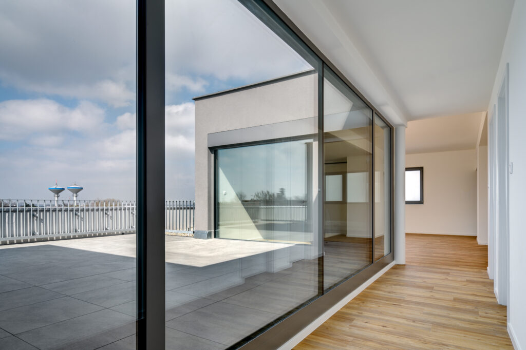 Tři bytové domy jsou napojeny na dvě vertikální komunikační jádra. Dispozičně jsou uspořádány jako troj trakt se středovou chodbou a orientací bytů východ-západ. Základní modul – bytovou jednotku tvoří byt 2+kk s lodžií. Dva moduly 2+kk vedle sebe zároveň umožňují variabilní uspořádání 3+kk a 1+kk, případně 4+kk. Tím bylo umožněno vytvoření matice bytů odpovídající aktuálním potřebám realitního trhu. V posledním podlaží jsou umístěny byty 4+kk se střešními terasami.