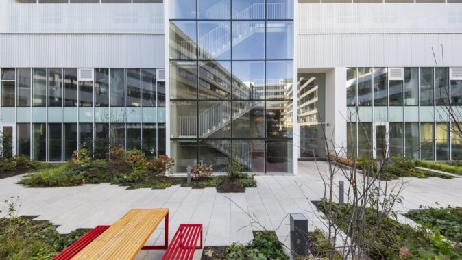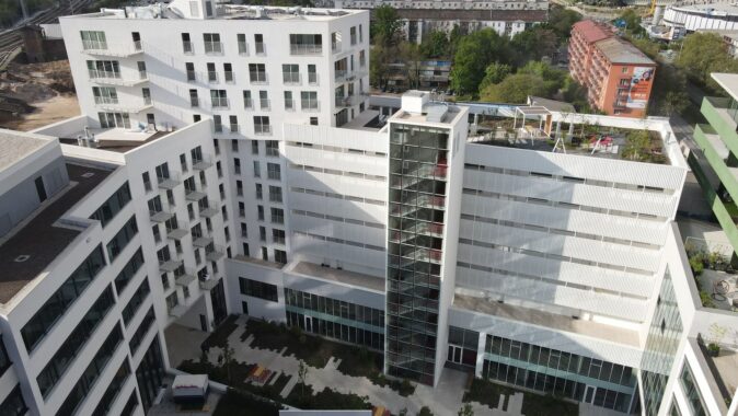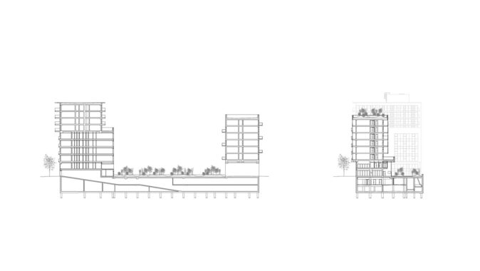 Střední sekce B je osmipodlažní pavlačový dům s 48 bytovými jednotkami k pronájmu a komerčními prostory v přízemí. Schodišťová věž je vysunuta mimo objekt a hlavní vstup do ubytovací části je z vnitrobloku. Střešní zahrada slouží k odpočinku obyvatel domu.