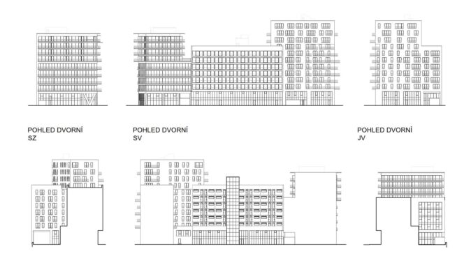 Ačkoli je podzemní podlaží propojuje, jednotlivé domy se liší provozem, uspořádáním a funkcí. Zároveň žádný z architektů neměl možnost ovlivňovat práci toho druhého a výsledek vychází z konceptu „rostlého města“. Uvnitř bloku se nachází společné, veřejně přístupné prostranství. Parter nabízí administrativní a obchodní prostory, do nichž vedou dva hlavní vstupy – z nároží ulice Nové sady a z jihovýchodní části.