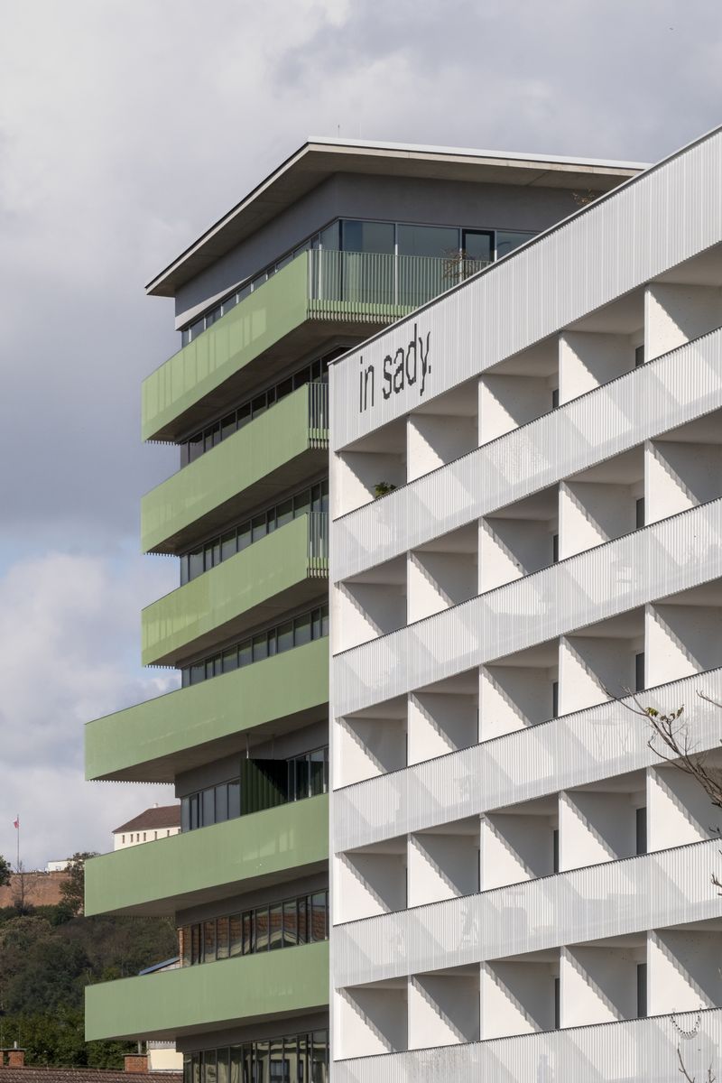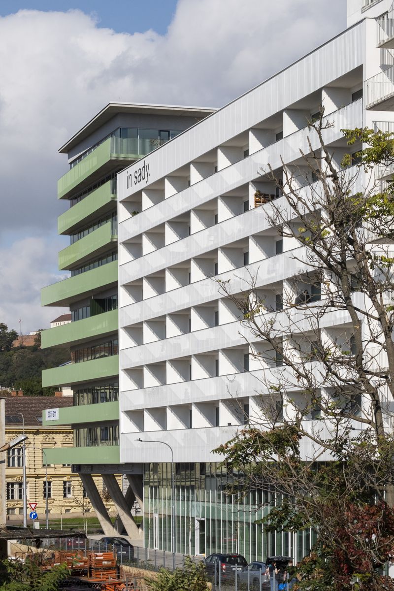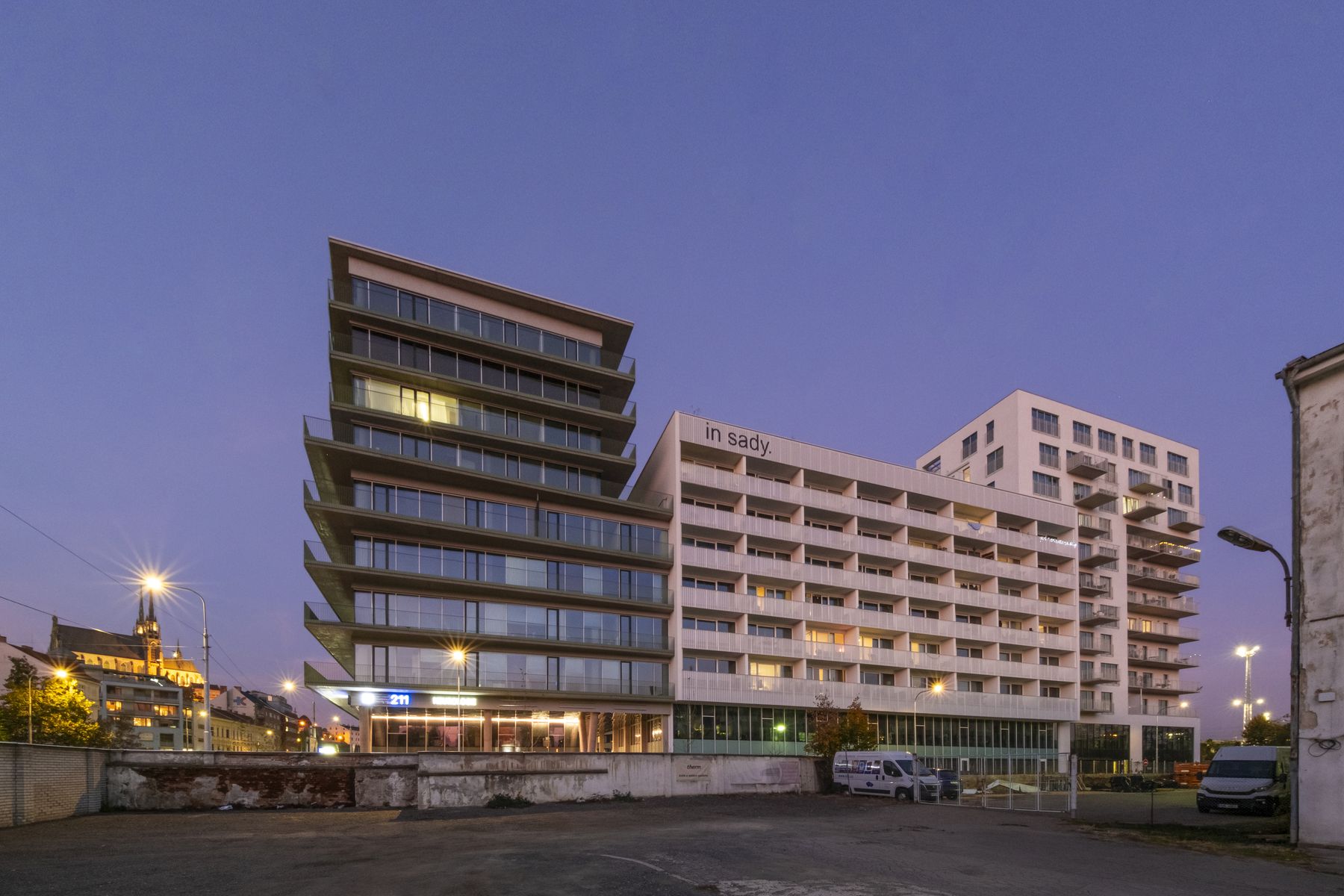 Projekt IN sady v Brně sestává ze tří částí, které zahrnují komerční, administrativní, ubytovací a bytové jednotky. Nadzemní část byla rozdělena mezi dvě architektonické kanceláře, a53 architekti a dílna, což vedlo ke vzniku tří odlišných domů.