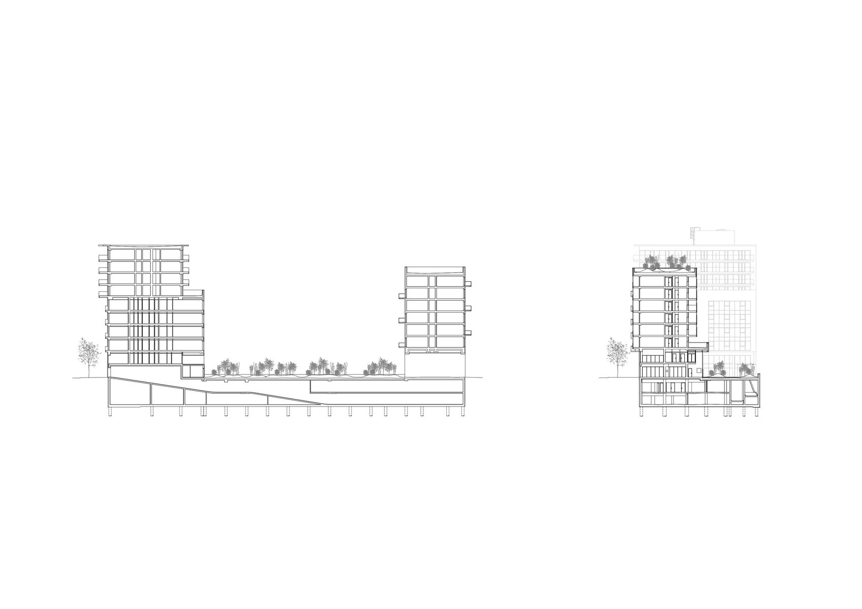 Střední sekce B je osmipodlažní pavlačový dům s 48 bytovými jednotkami k pronájmu a komerčními prostory v přízemí. Schodišťová věž je vysunuta mimo objekt a hlavní vstup do ubytovací části je z vnitrobloku. Střešní zahrada slouží k odpočinku obyvatel domu.