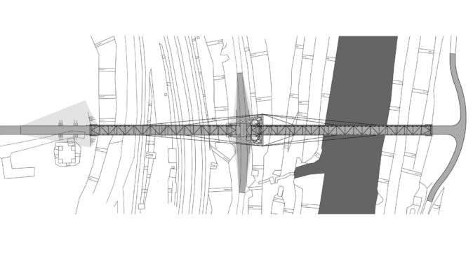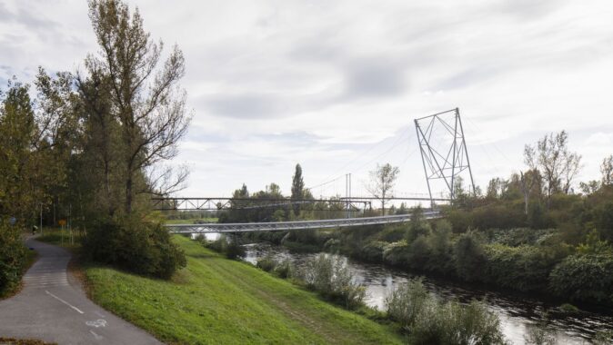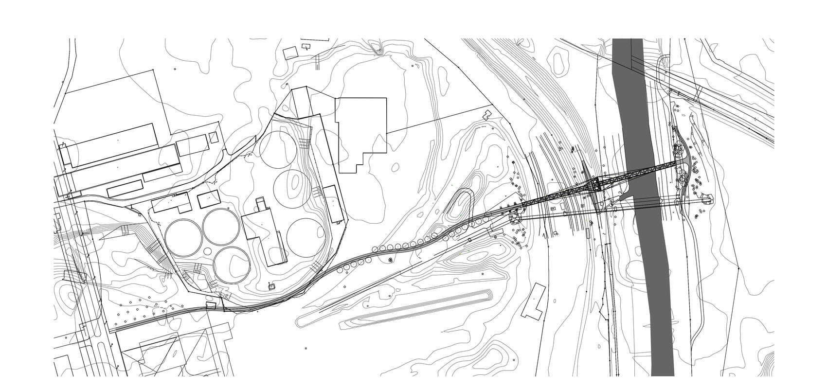 Výškově dramatický příčný profil terénu umožňuje provést diferencované přemostění řeky a soustavy kolejišť. Obě mostovky ve spojitém podélném průběhu vytvářejí plochou sinusoidu, která je pro pěší i cyklisty pohodlná a zároveň poskytne zážitek vnímání okolí. Soustava obou lávek tvoří jeden celek, působící v krajinném kontextu samozřejmě a nepostrádající velkorysost, která postindustriální krajině Ostravy sluší.